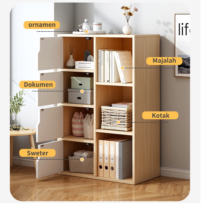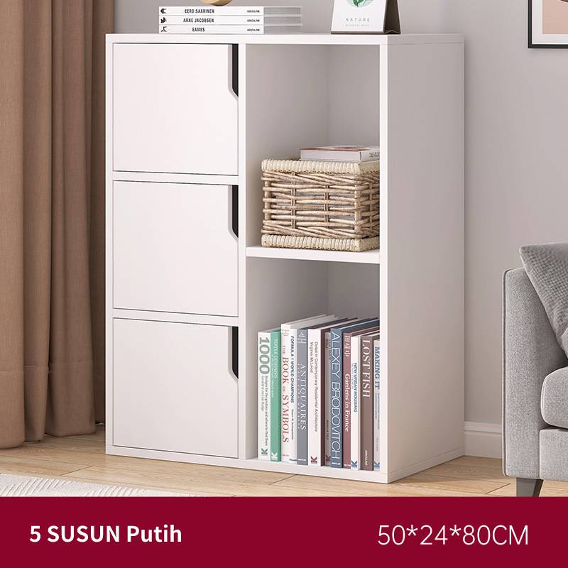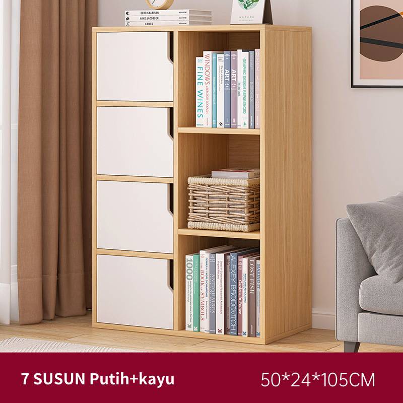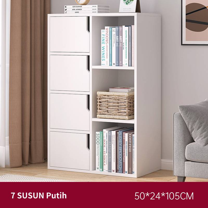 EARISE Rak Buku Kayu Kuat dan Kokoh Minimalis Rak Serbaguna Rak buku 7 SUSUN PUTIH KAYU