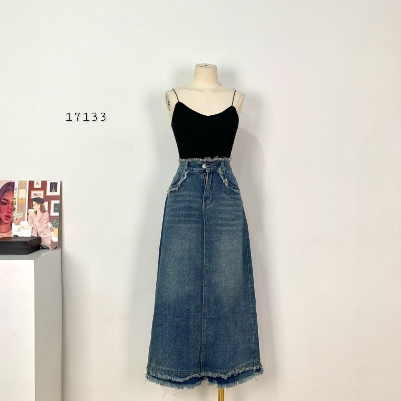 17133 Rok Jeans Denim Wanita Hijab Kekinian Premium ronde bawah