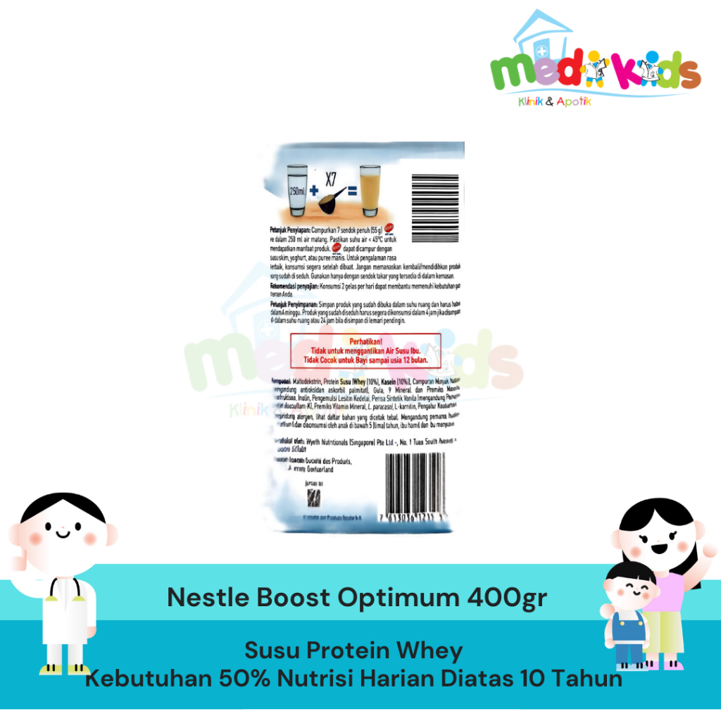 Nestle Boost Optimum 400gr - Susu Protein Whey Kebutuhan 50% Nutrisi Harian Usia > 10 Tahun