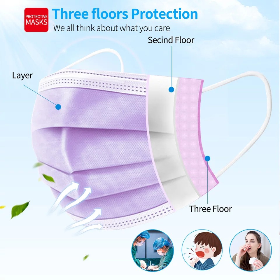 COD - DISPOSABLE FACE MASK 3ply 50pcs MASKER MEDIS WARNA UNGU PURPLE SURHICAL CARE ISI 50 PCS