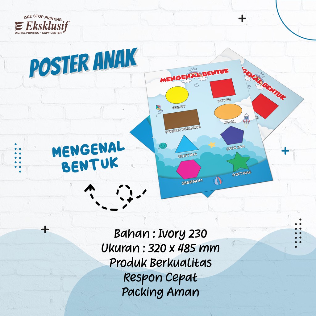 Poste Anak / Poster Dinding (BELAJAR MENGENAL BENTUK) / Poster Custom / Poster dinding Kamar / A3