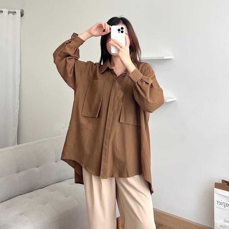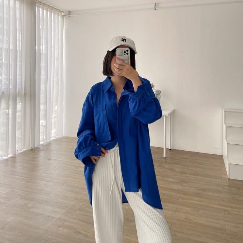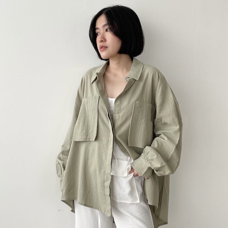 Kemeja Linen Oversize - Kemeja Linen Crinkle - NIKI Shirt