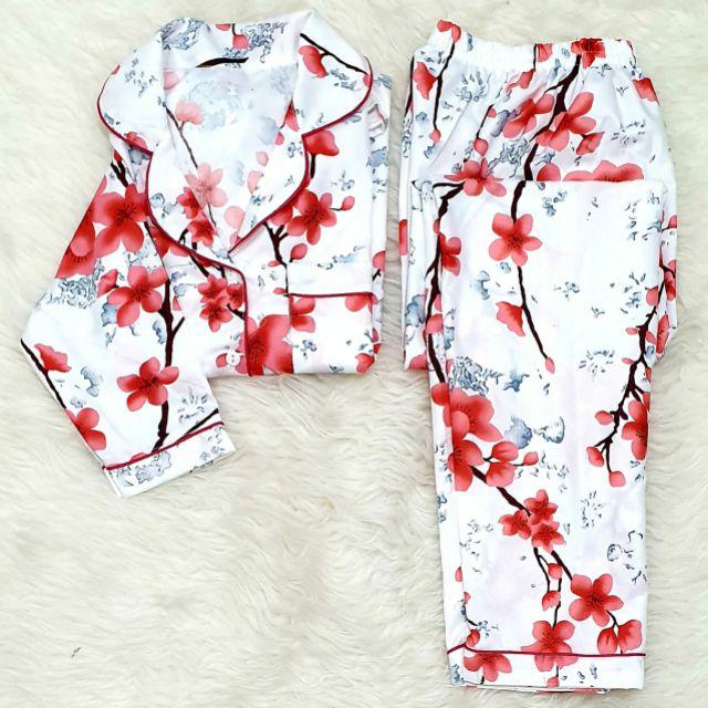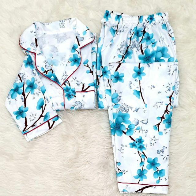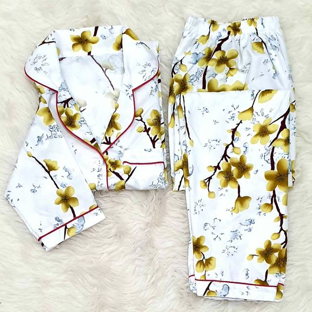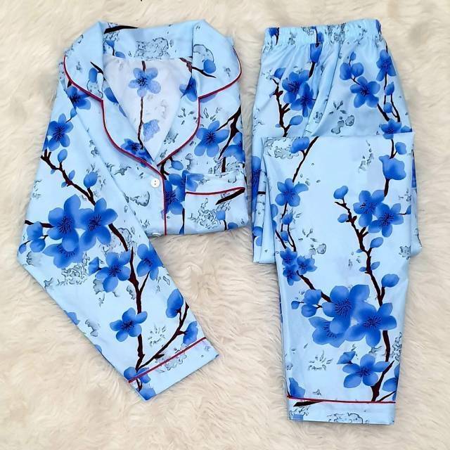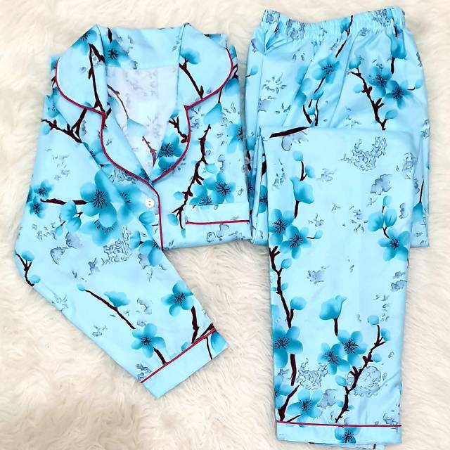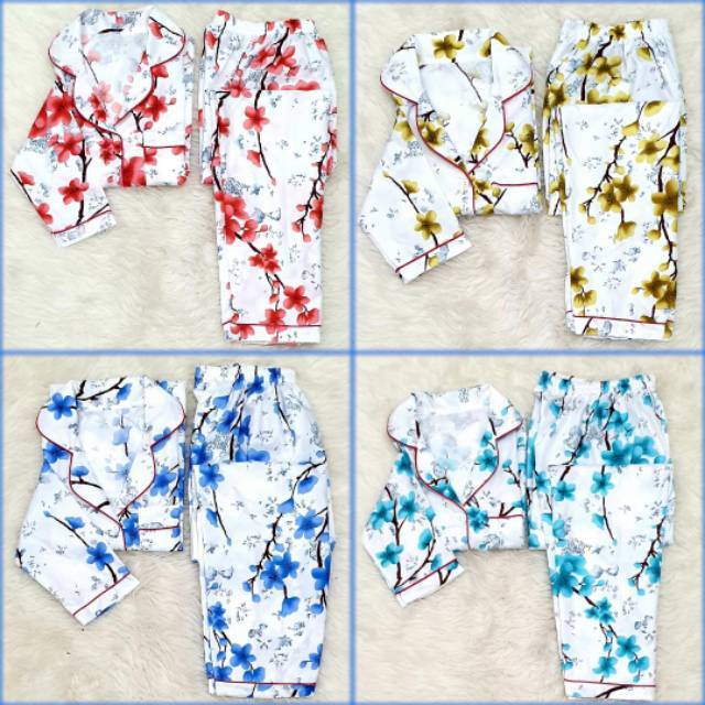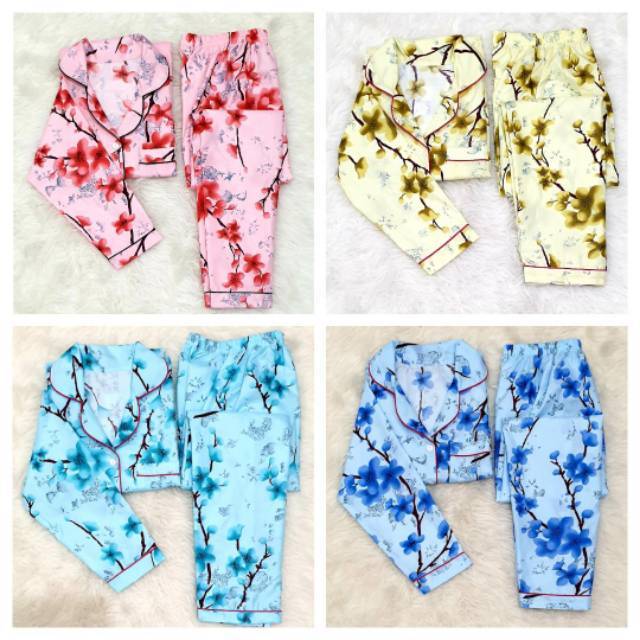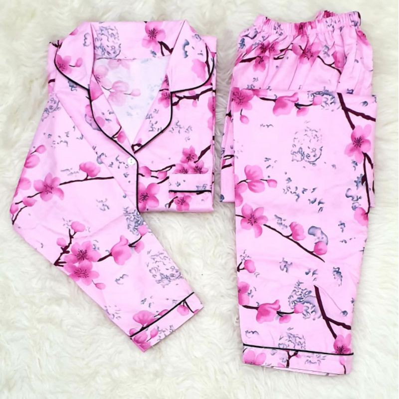 Baju Tidur Piyama Wanita / Cewek Katun Micro Motif Kembang Sakura All Size L Varian PP