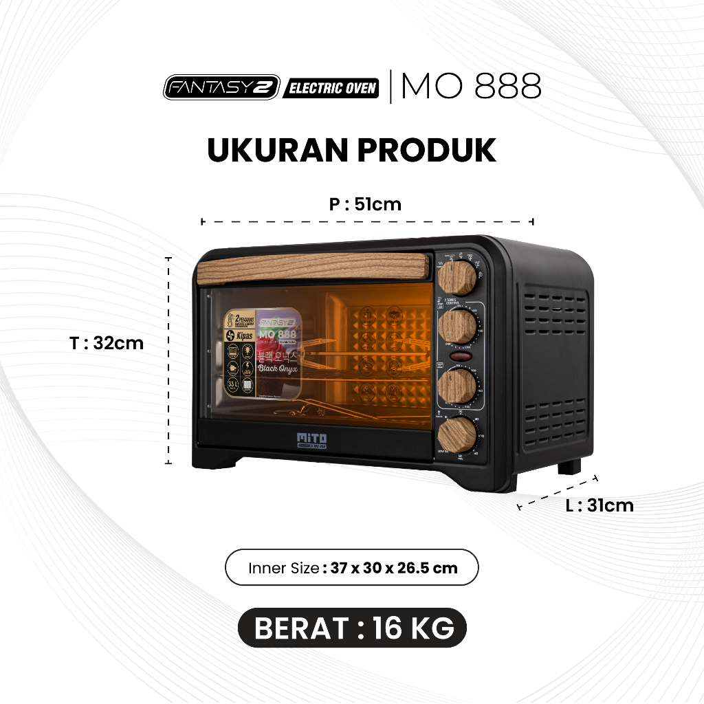 MITO Oven Listrik Fantasy 2 MO888 Wood Series 33L Low Watt