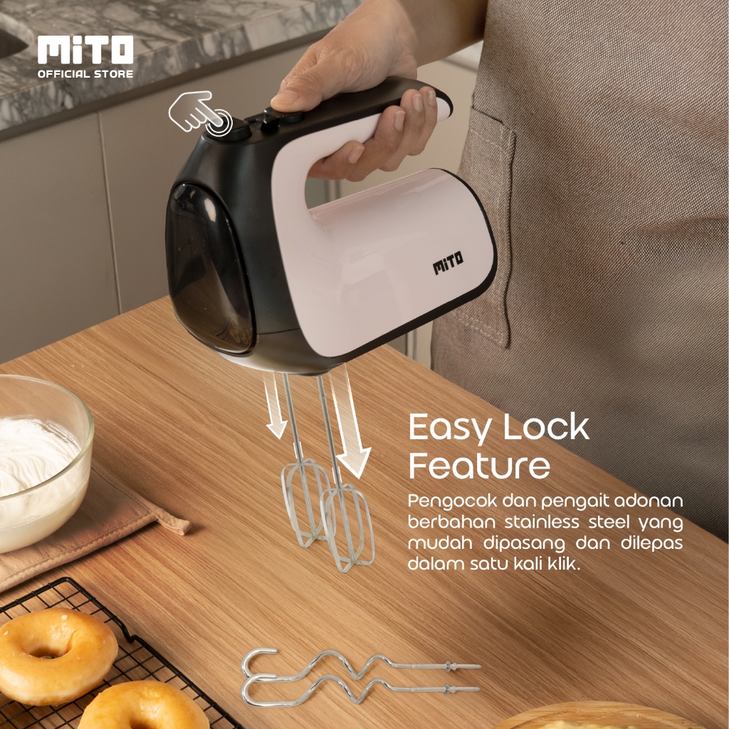 MITO MX10 Hand Mixer – 5 Speed Turbo, Motor Kuat dan Stabil, Hemat Listrik