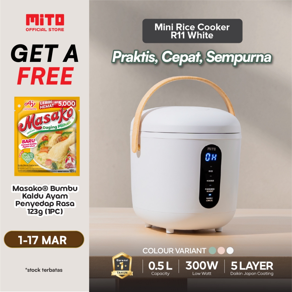 MITO Mini Rice Cooker R11 0,5L Handle Kayu - White