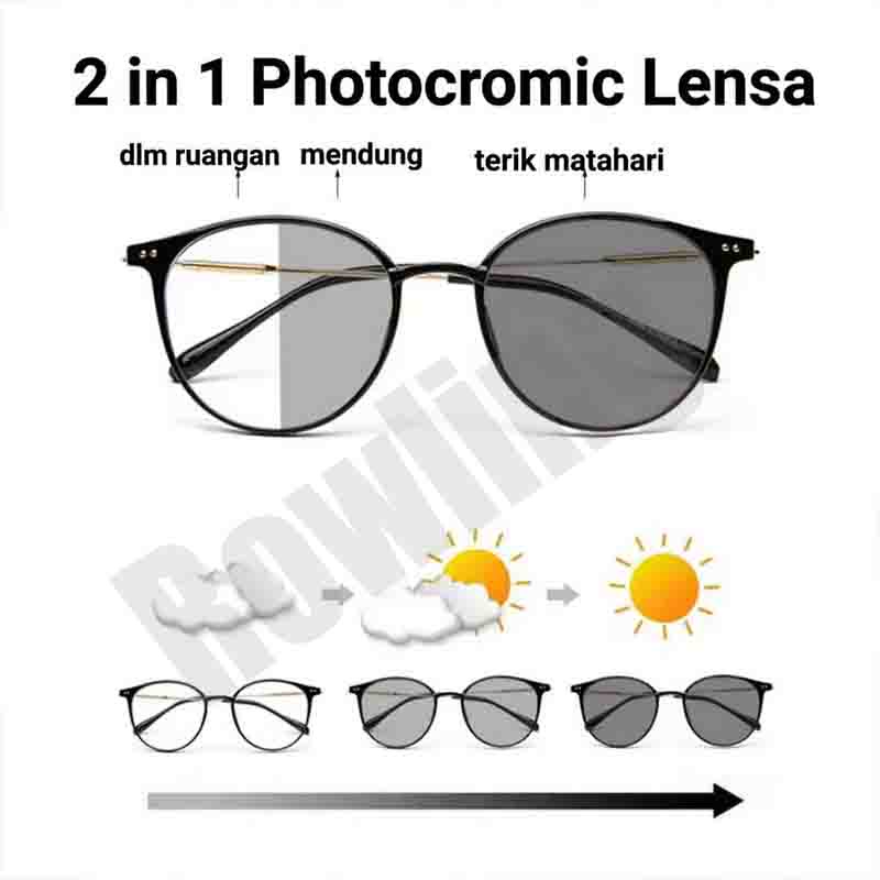 Rowling (Pc-144)2 In 1 Kacamata lensa photocromic anti radiasi wanita pria kacamata bingkai Titanium komputer Anti UV fotocromic