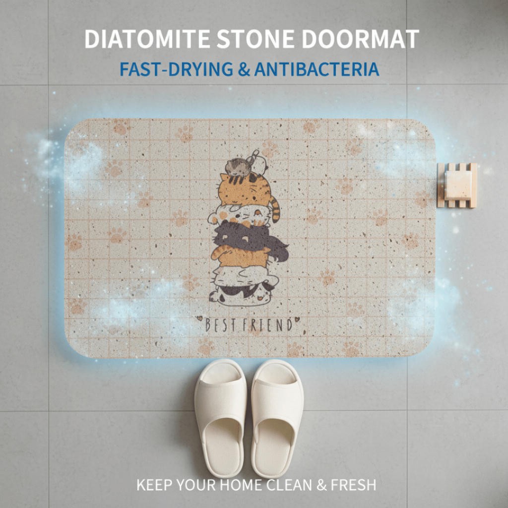 Keset Batu Diatomite Motif Kartun Lucu 60x40cm Tebal 9mm Cepat Kering Anti Slip dan Anti Bakteri