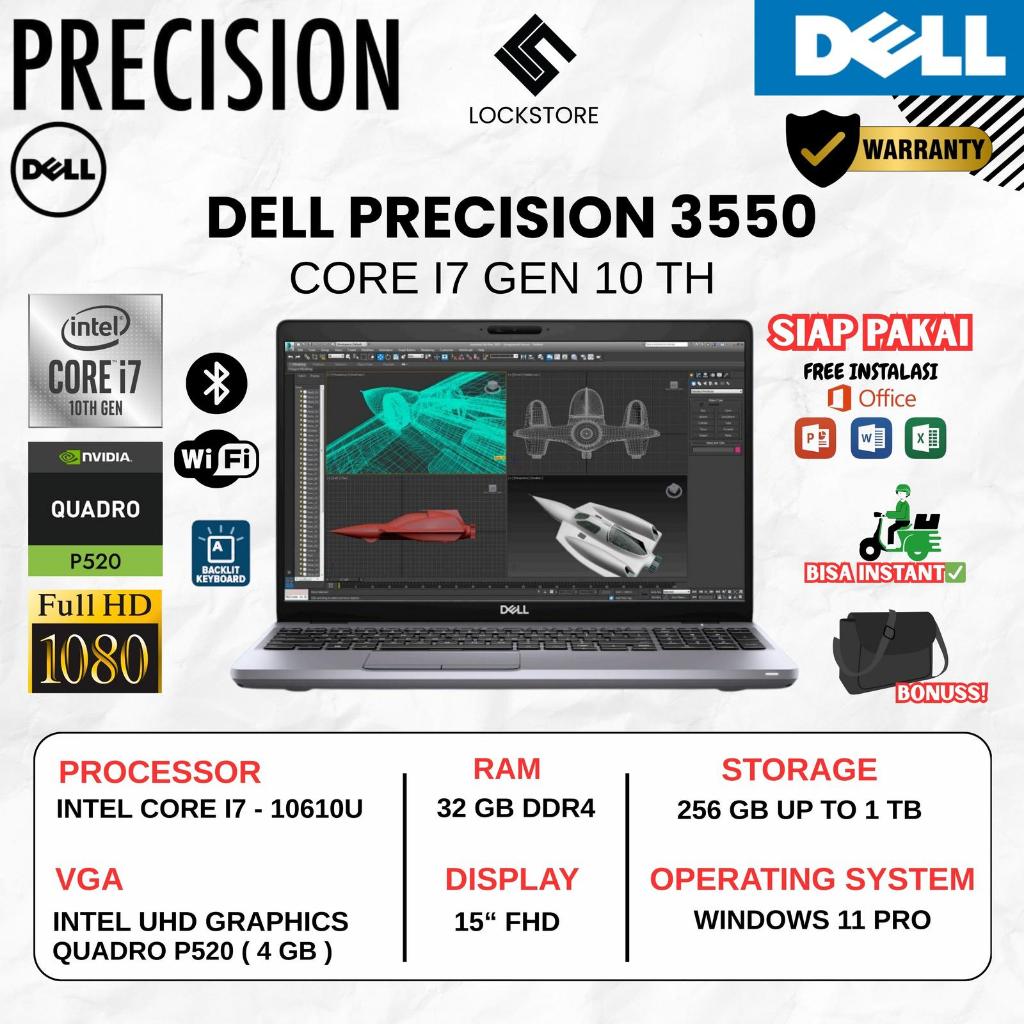 Dell Precision 3550 Core i7 10610U | RAM 32GB | SSD 1TB | Quadro P520 4GB | 15 Inch | Windows 11 Pro | Second / Original / Berkualitas / Bergaransi