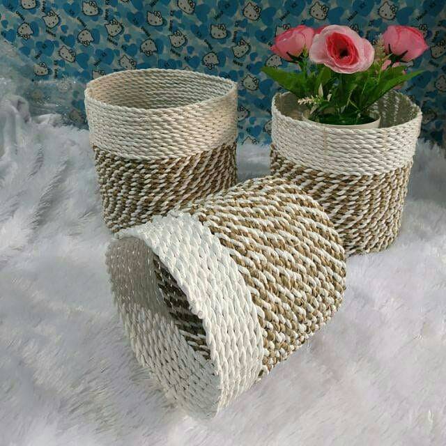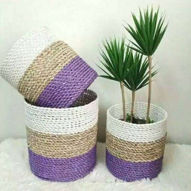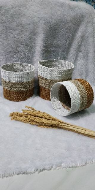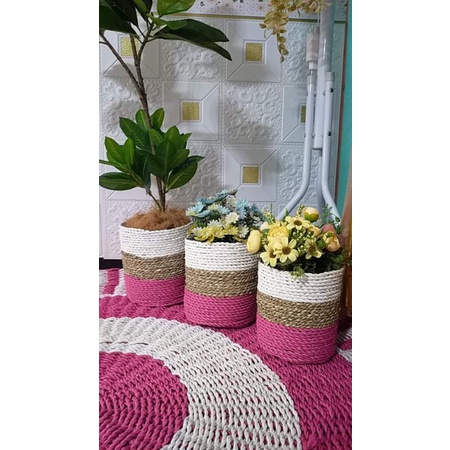 COVER POT 3pc bisa pilih WARNA sesukamu/ ANYAMAN SEAGRASS PANDAN / pot / pot bunga / pot murah