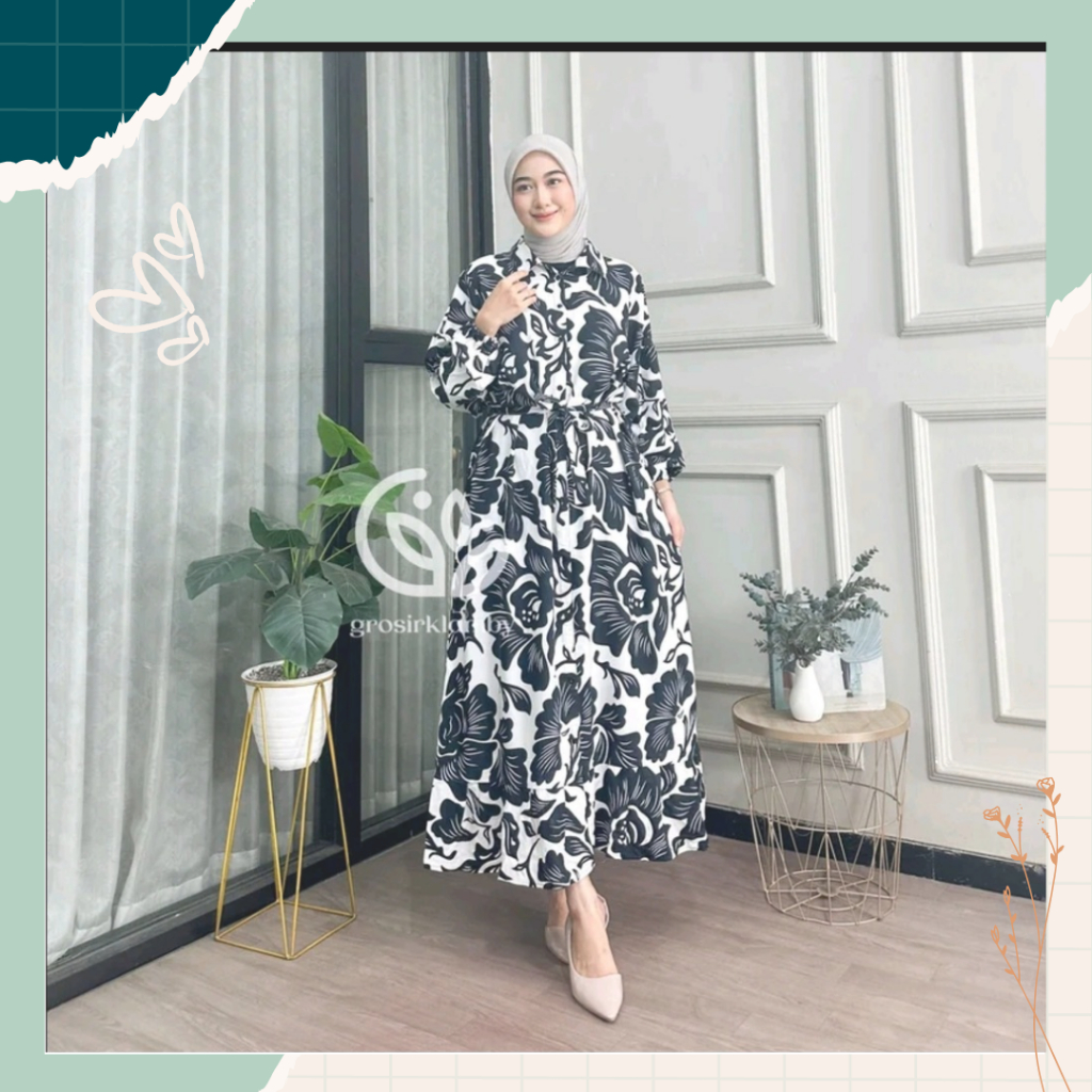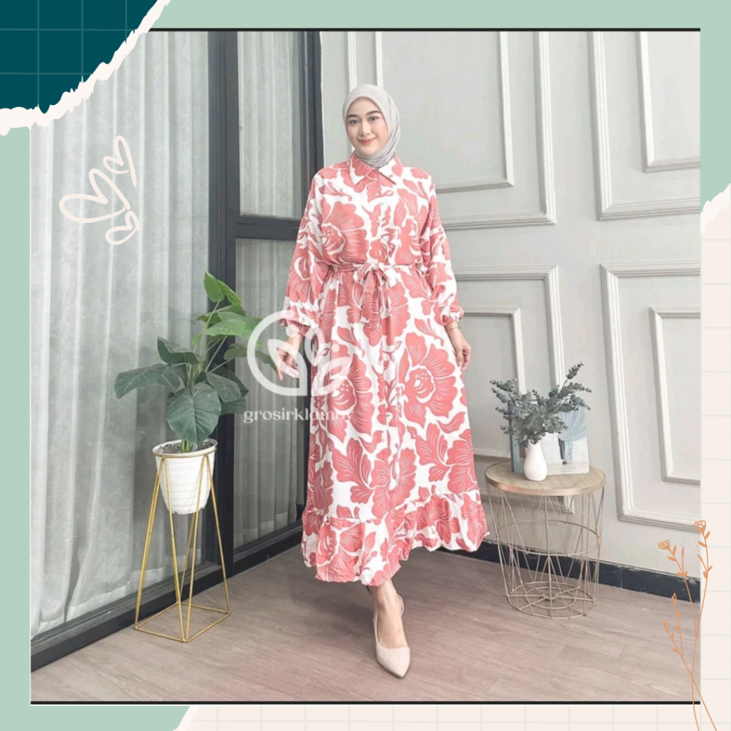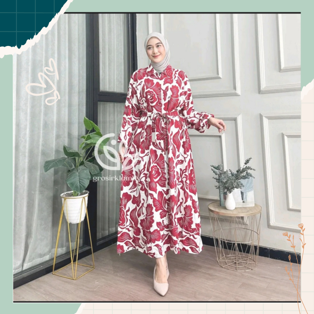 Gamis Riri Dress Rayon Premium Ringan Lembut Rempel Busui Lengan Panjang Homedress Motif Batik Tebal Adem Nyaman