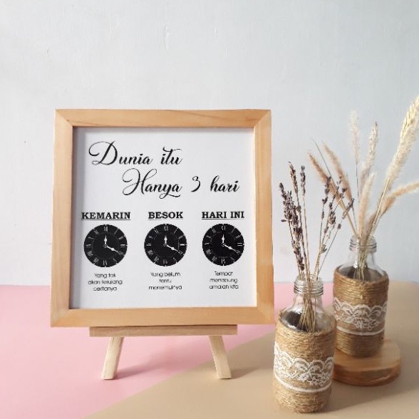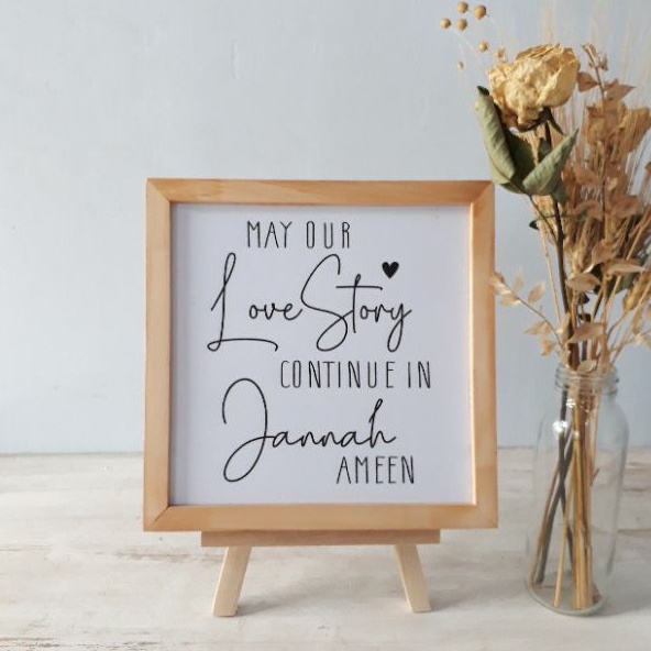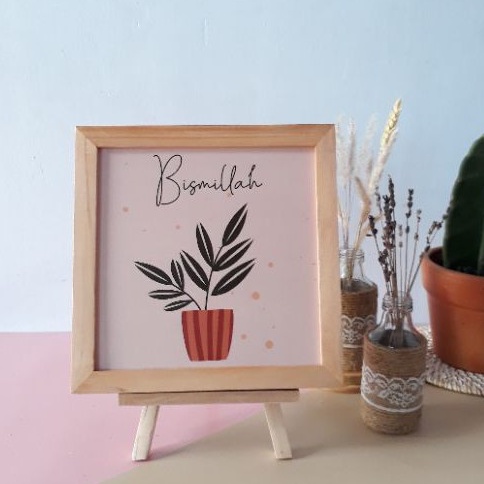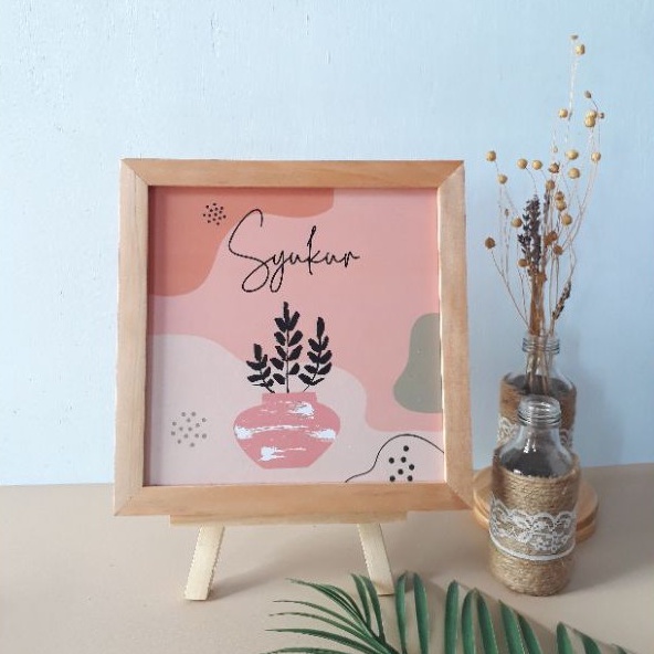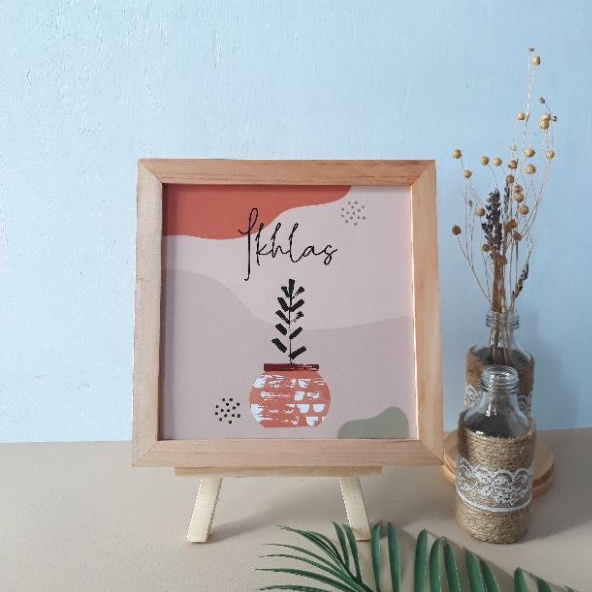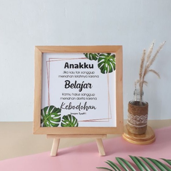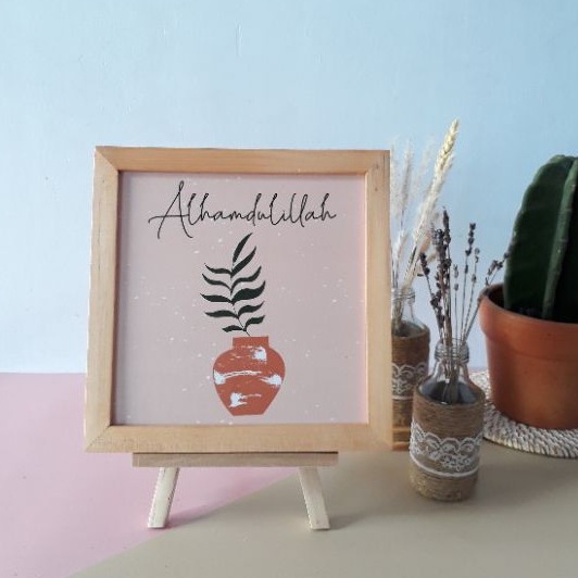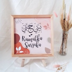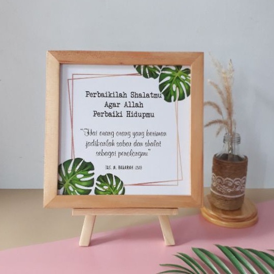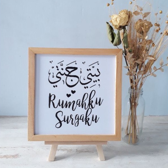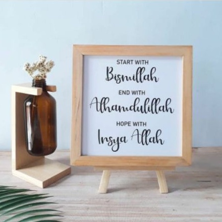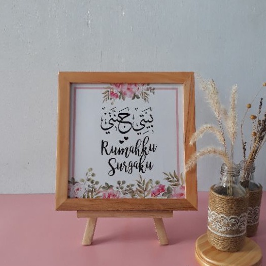 Pajangan Meja Hiasan Dinding Pajangan Rak Pajangan Dinding Kaligrafi Pigura Kayu Ukuran 20cm x 20cm Dengan Standing Dudukan