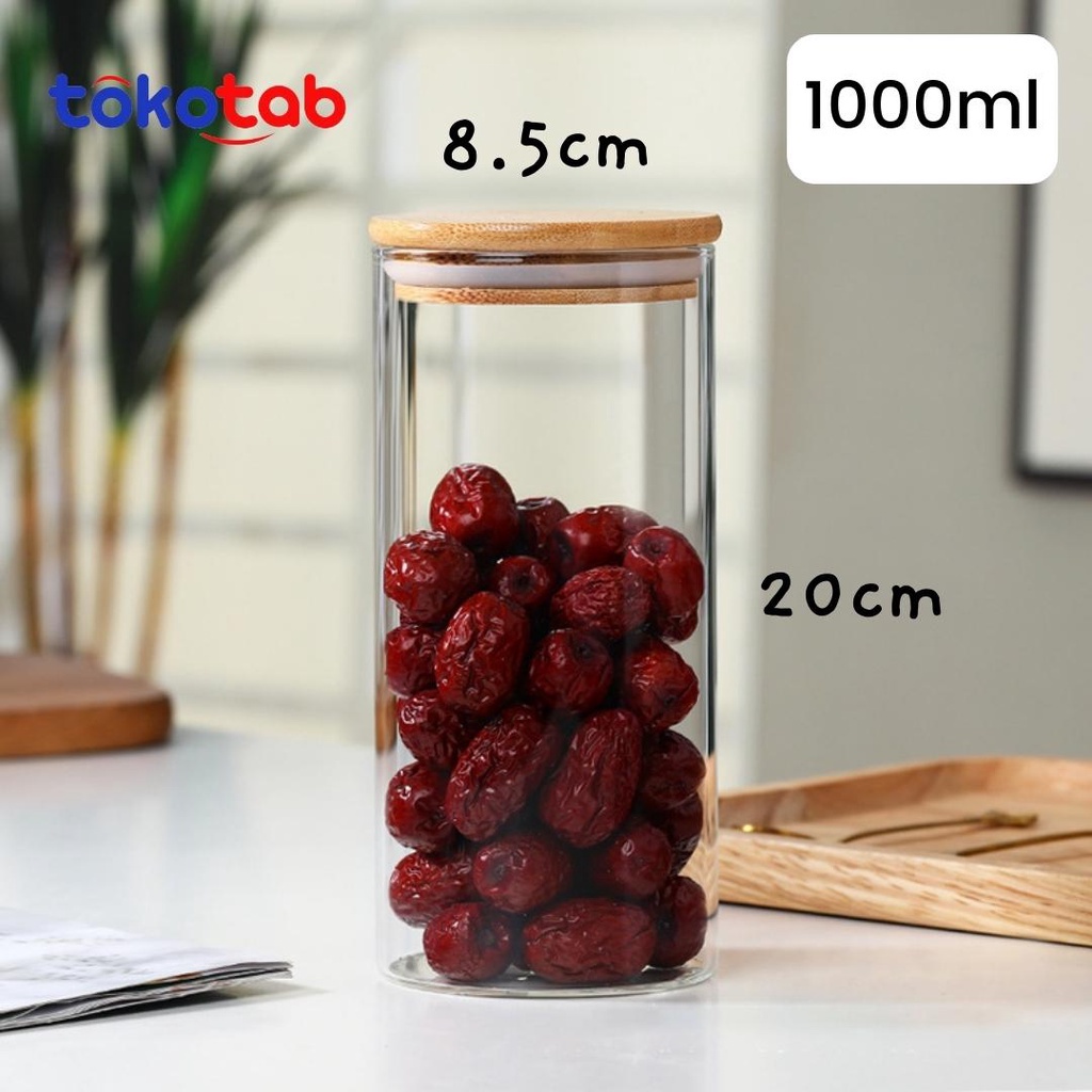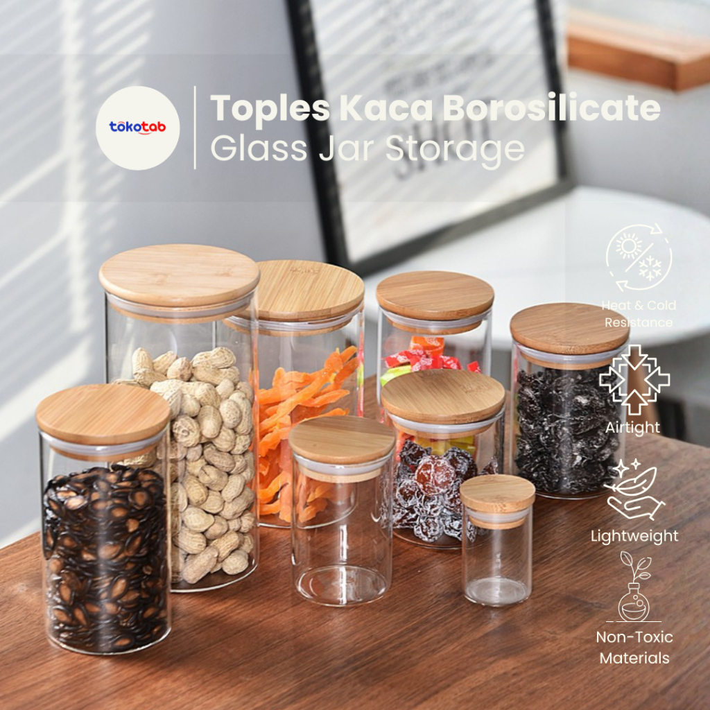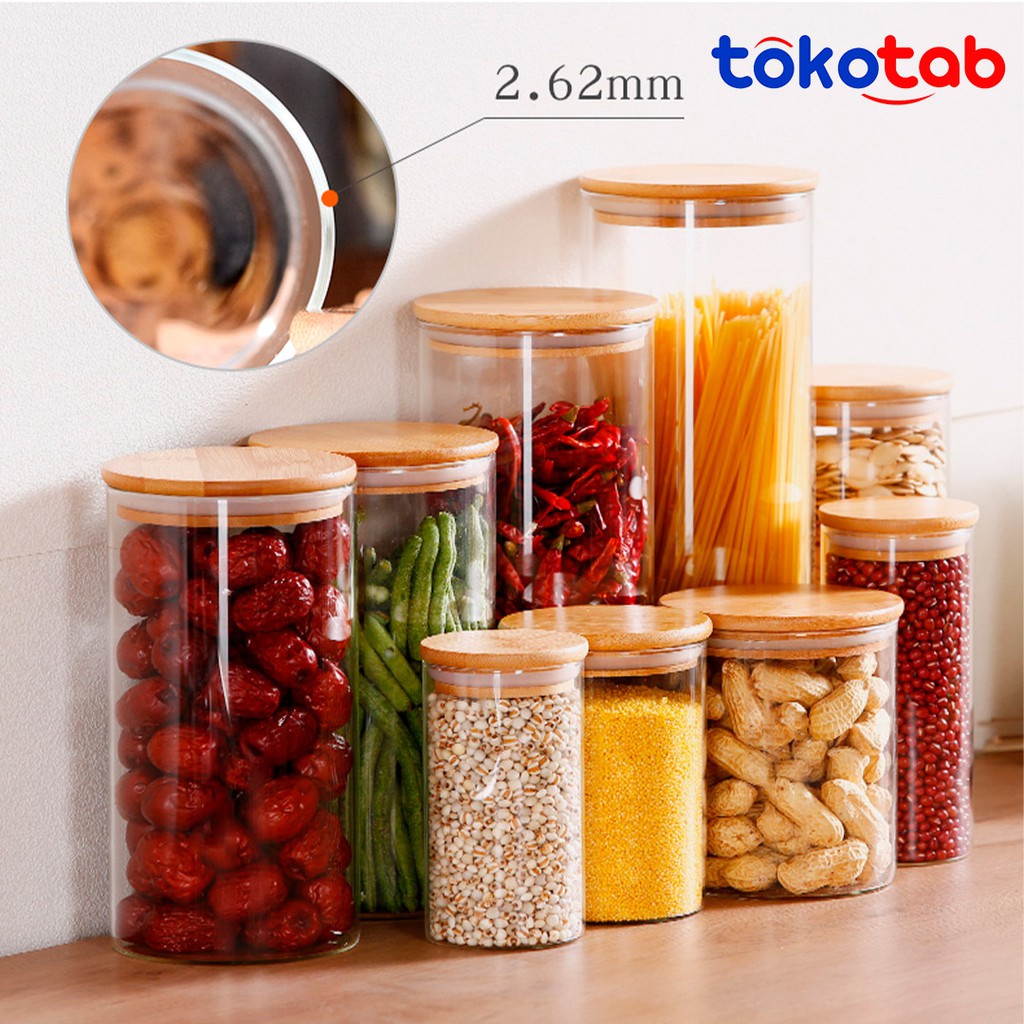 Toples Kaca Snack Teh Permen Camilan Serbaguna Tutup Kayu Jar Airtight Minimalis Premium
