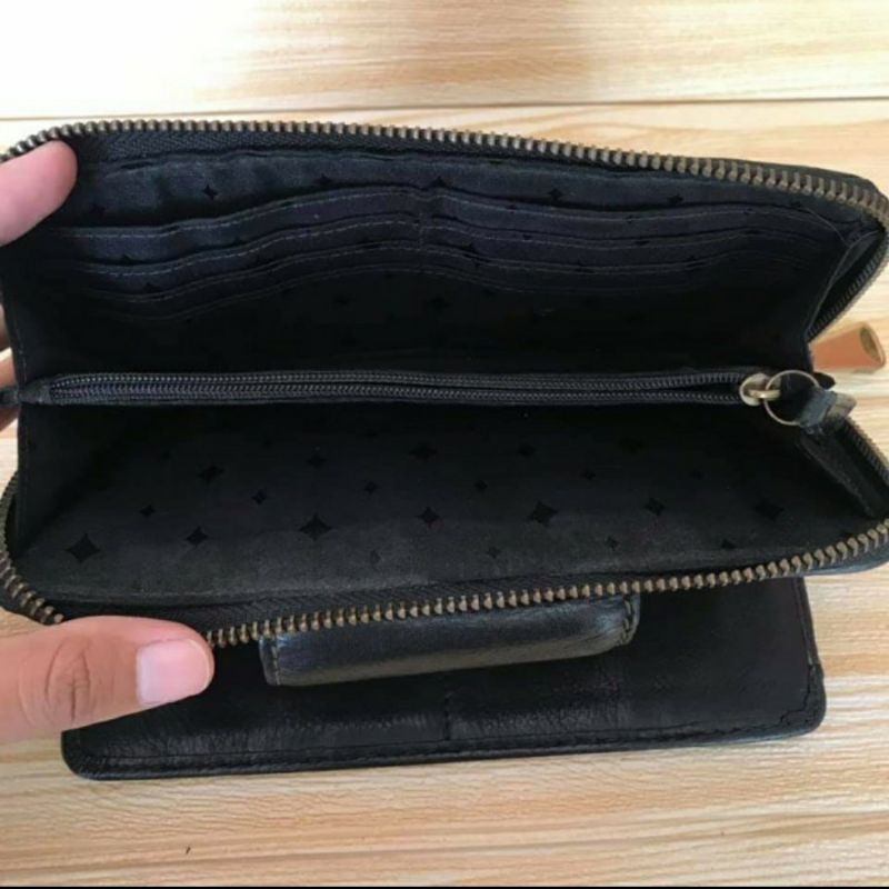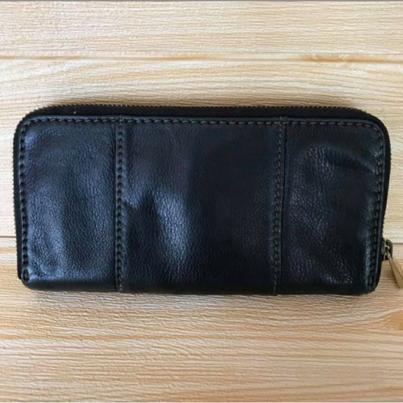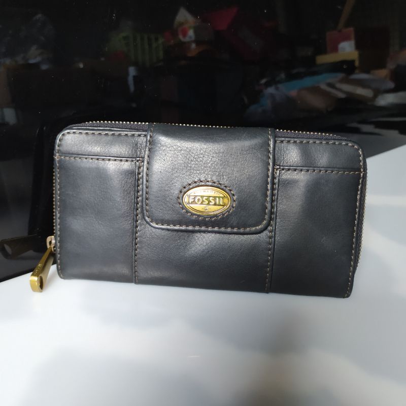 Dompet Wanita FOSSIL Explorer Zipper Clutch Black Leather Original Long Wallet