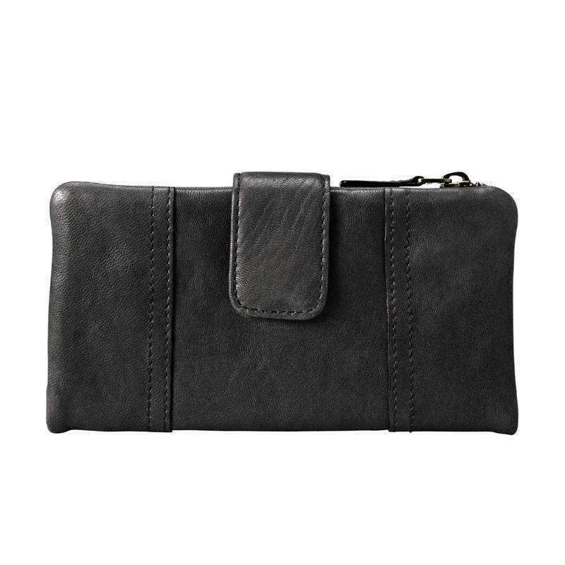 Dompet Wanita FOSSIL Emory Clutch Black Brown Patchwork Leather Original Long Wallet