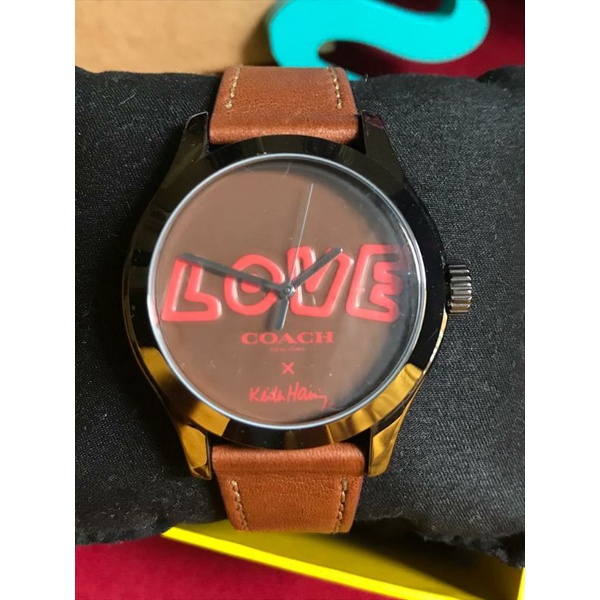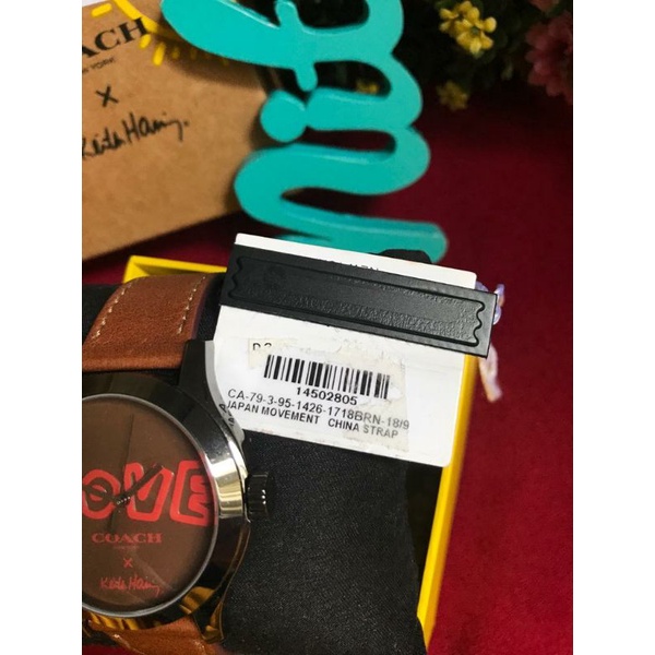 Jam Tangan COACH X KEITH HARING Maddy Love Brown Leather Strap 14502805 Original