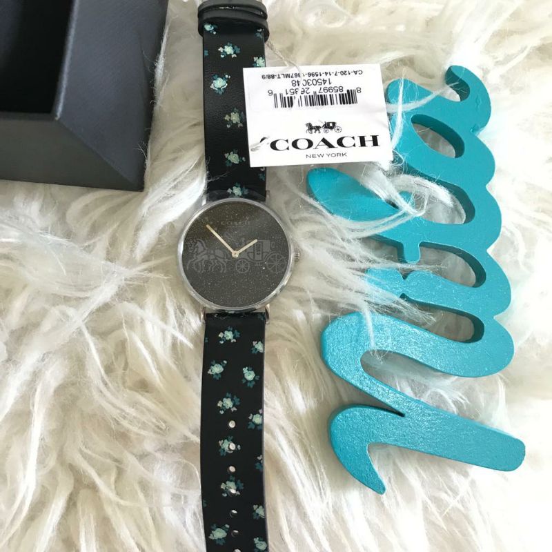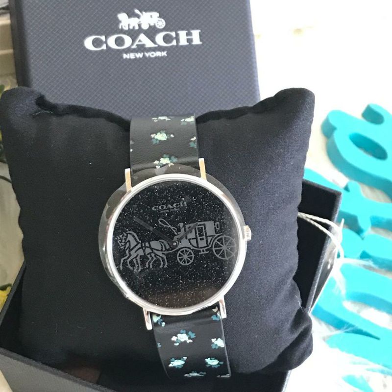 Jam Tangan COACH Perry 14503048 Glitter Dial Black Floral Strap Hitam Flower