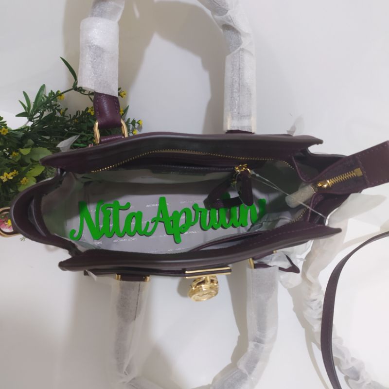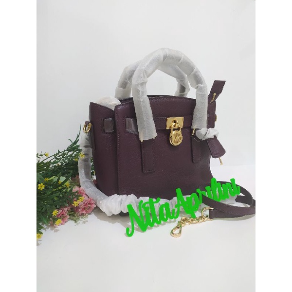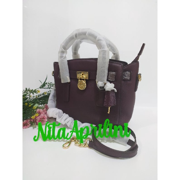 Tas MICHAEL KORS MK Hamilton Medium Satchel Damson Leather Original