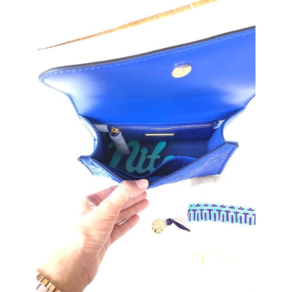 Tas TORY BURCH TB Small Fleming Convertible Shoulder Bag Nautical Blue Leather Original