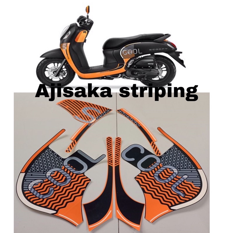 striping stiker sticker scoopy fashion 2022 oren hitam oren doff black doff lis les lest polet bodi motor Honda kualitas asli
