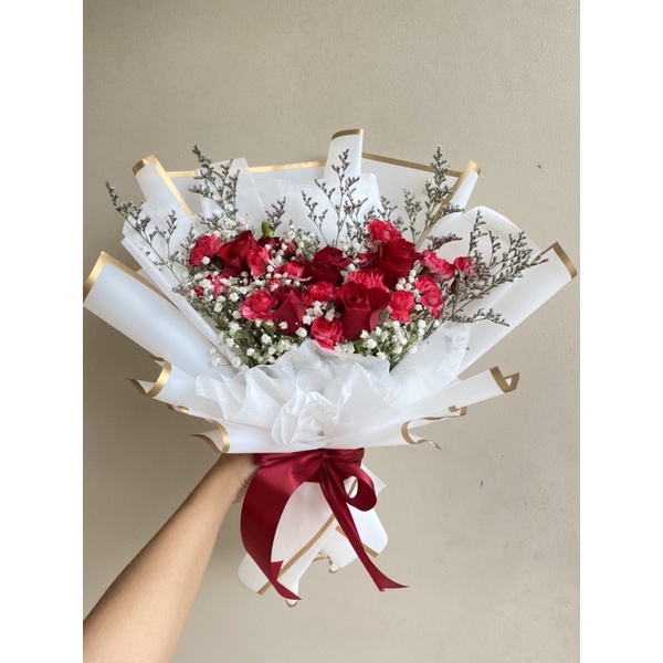 bouquet flower fresh rose red heart viral murah gading serpong tangerang