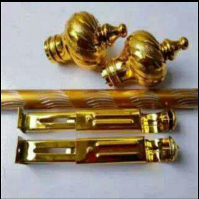Batang Gorden Tiang Besi Hordeng Fullset Rel Gordyn Rolet Gordeng Fulset Tiang Gorden Model Bulat Motif Kristal dan Garis