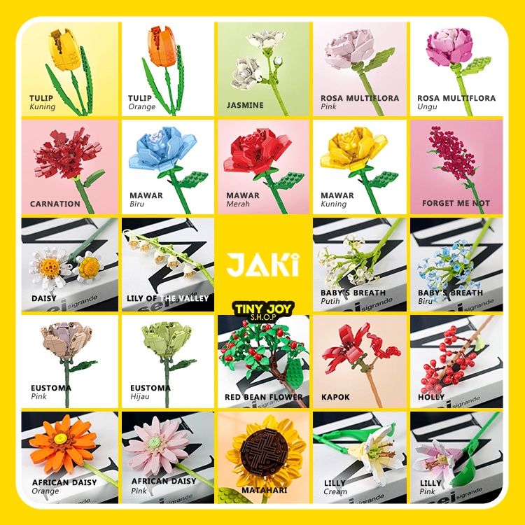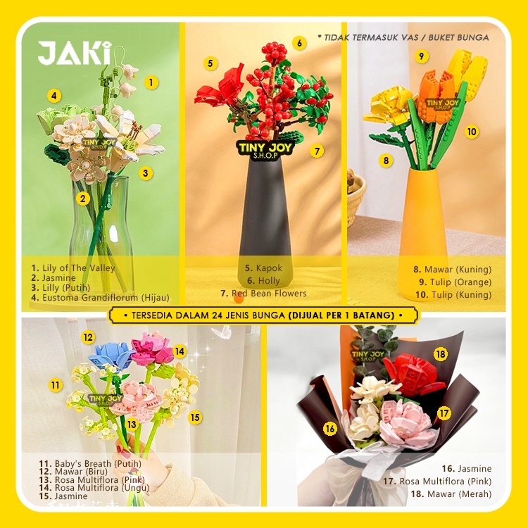 Mainan Balok Susun BUNGA DEKORASI BRICK Jaki Block Bricks Flower Buket Puzzle Mainan Edukasi Anak