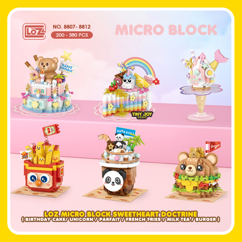 LOZ Mainan Micro Block (MINI FOOD & DESSERT MANIS) 8807-8812 Sweets Sweetheart Doctrine DIY 3D Puzzle Chibi Edukasi Balok Karakter Birthday Cake Animal Es Krim Binatang Bear Panda Kado Lucu Mainan Kawaii Ultah Hadiah Anak Dewasa Kids Adult Building Brick