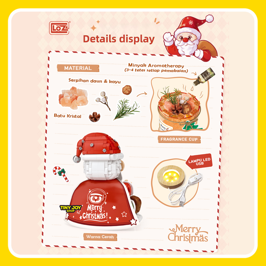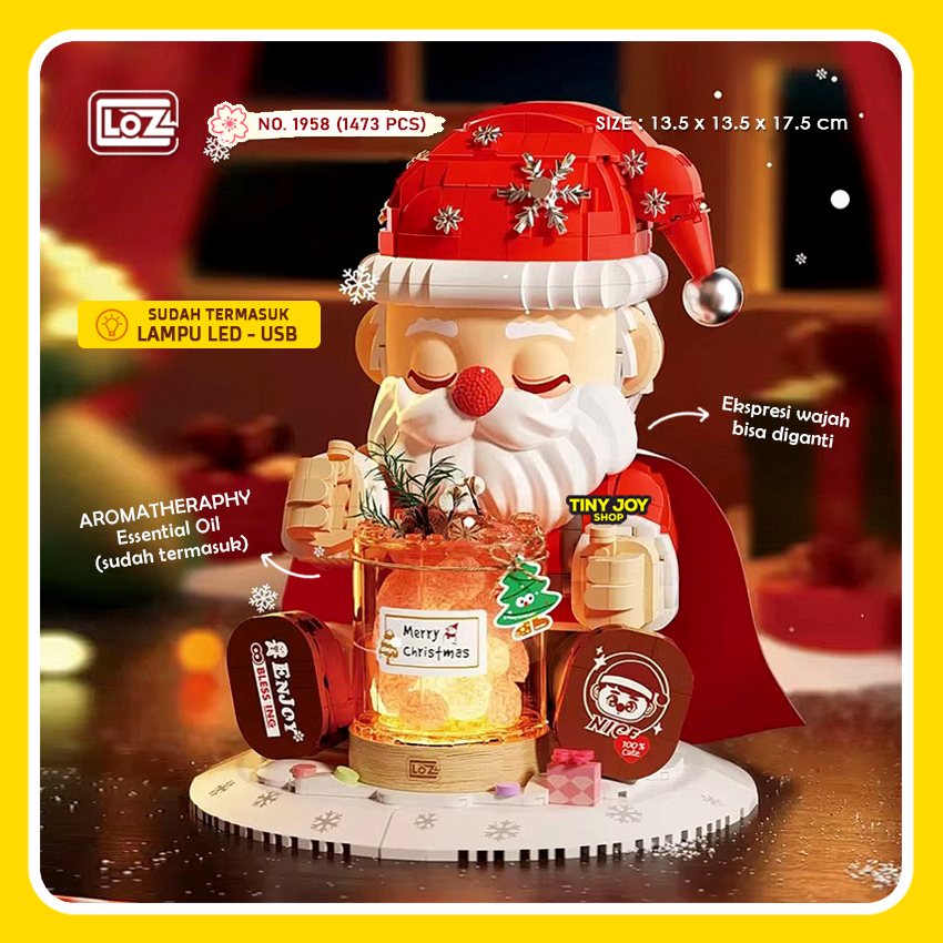 LOZ Bricks CHRISTMAS SANTA CLAUS LAMPU NATAL FRAGRANCE 1958 Mini Block Sinterklas Night Lamp Aromatherapy Mainan Balok Susun Edukasi