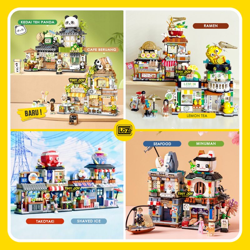 LOZ Bricks RUMAH BINATANG TOKO JEPANG Mini Block Takoyaki Kucing Panda Mainan Balok Edukasi Anak DIY