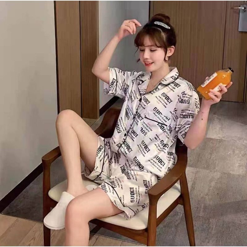 Baju Tidur Satin Import Piyama Satin Motif Baju Tidur Celana Pendek Pajamas Satin Hp Lengan Pendek / SET Piyama Dewasa Kancing Full / STELAN TIDUR KERAH