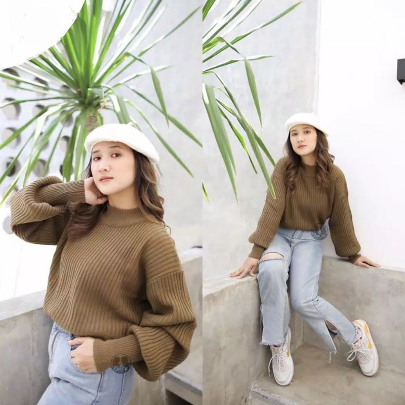 NADIRA KNITWEAR OVERSIZED || Sweet Bubble Sweater Baju Rajut Lengan Baloon Korean Style PREMIUM