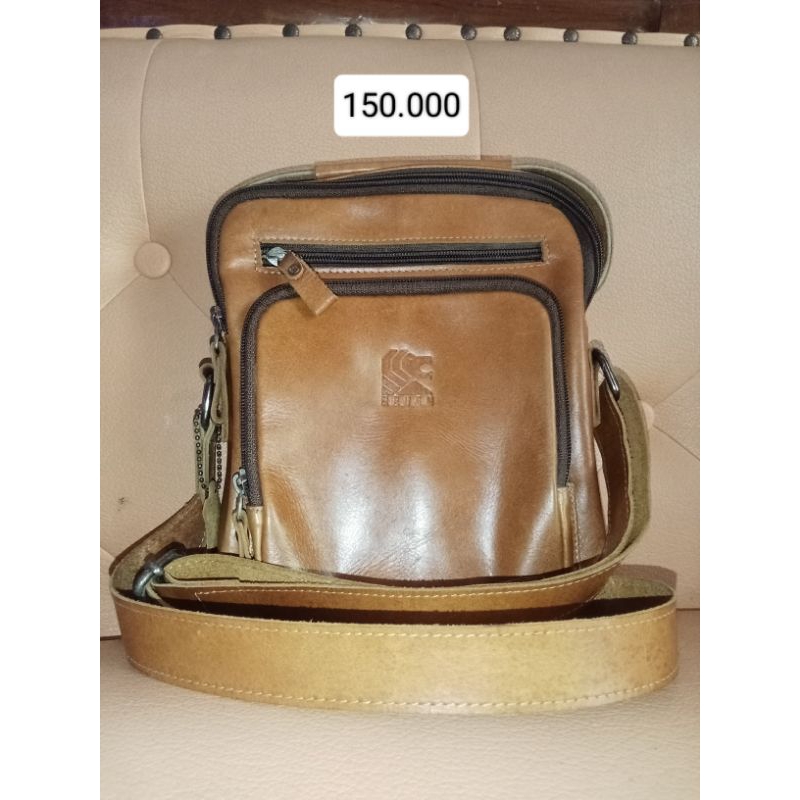 Tas REVEN kulit asli, tas Selempang Cowok (Preloved)