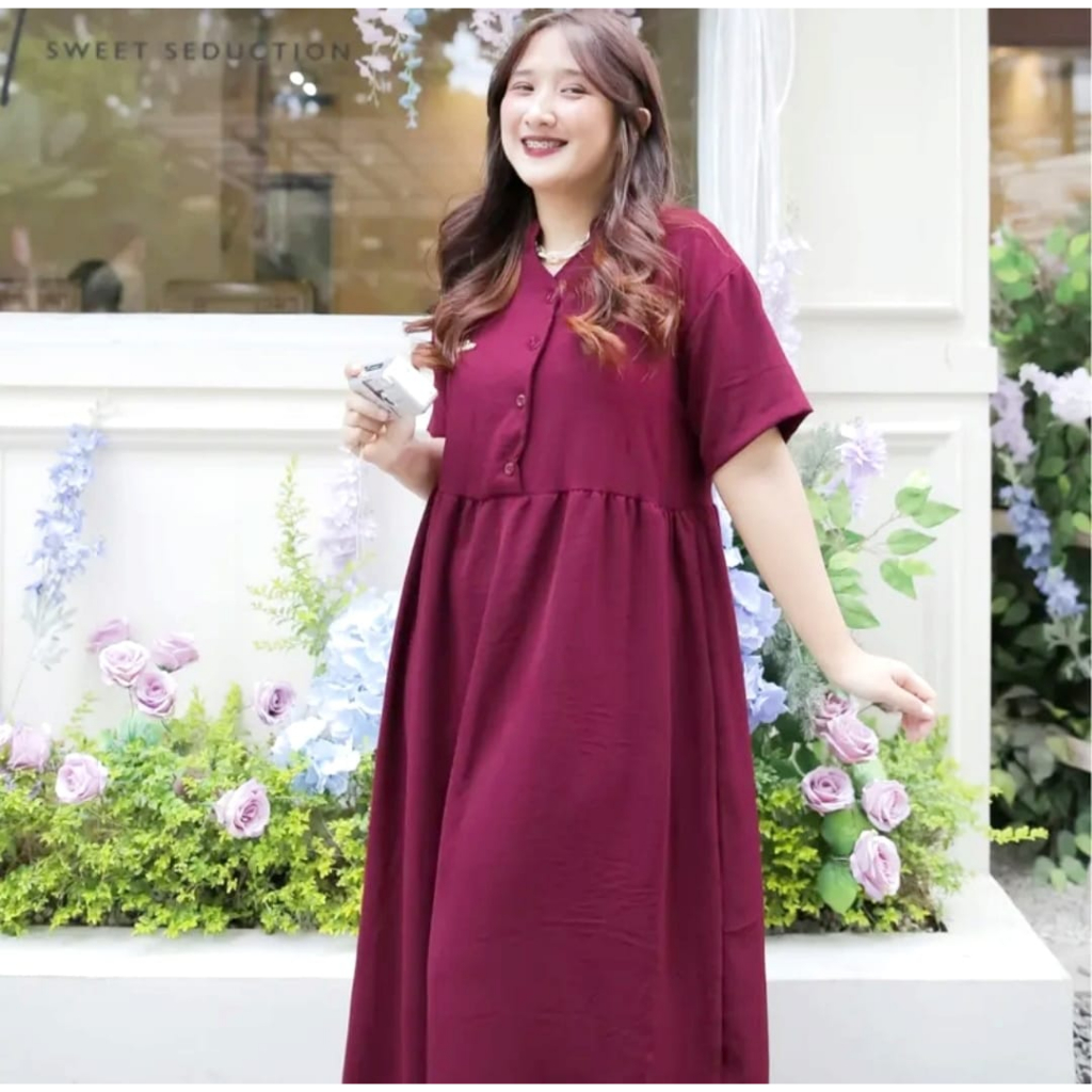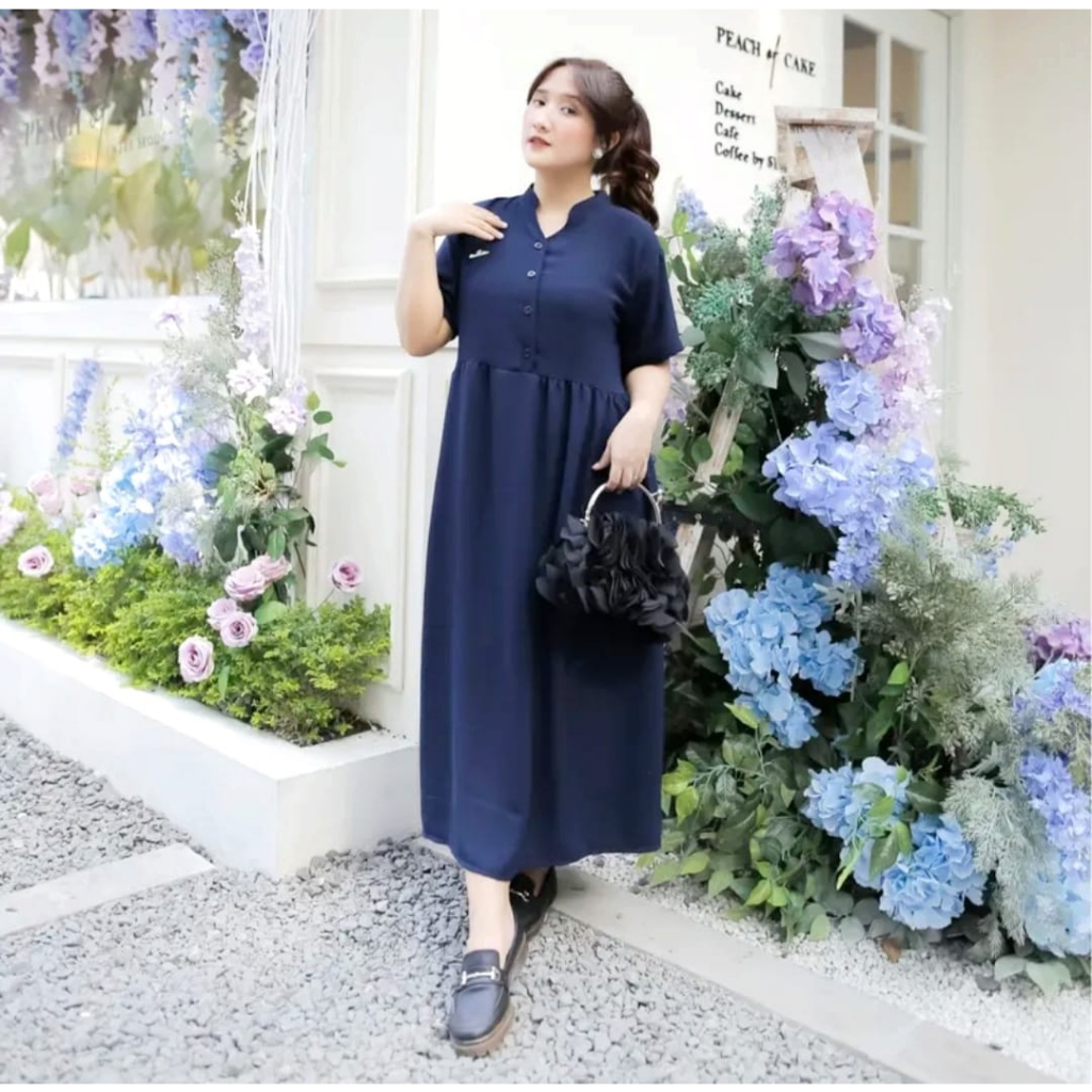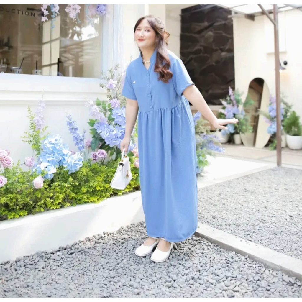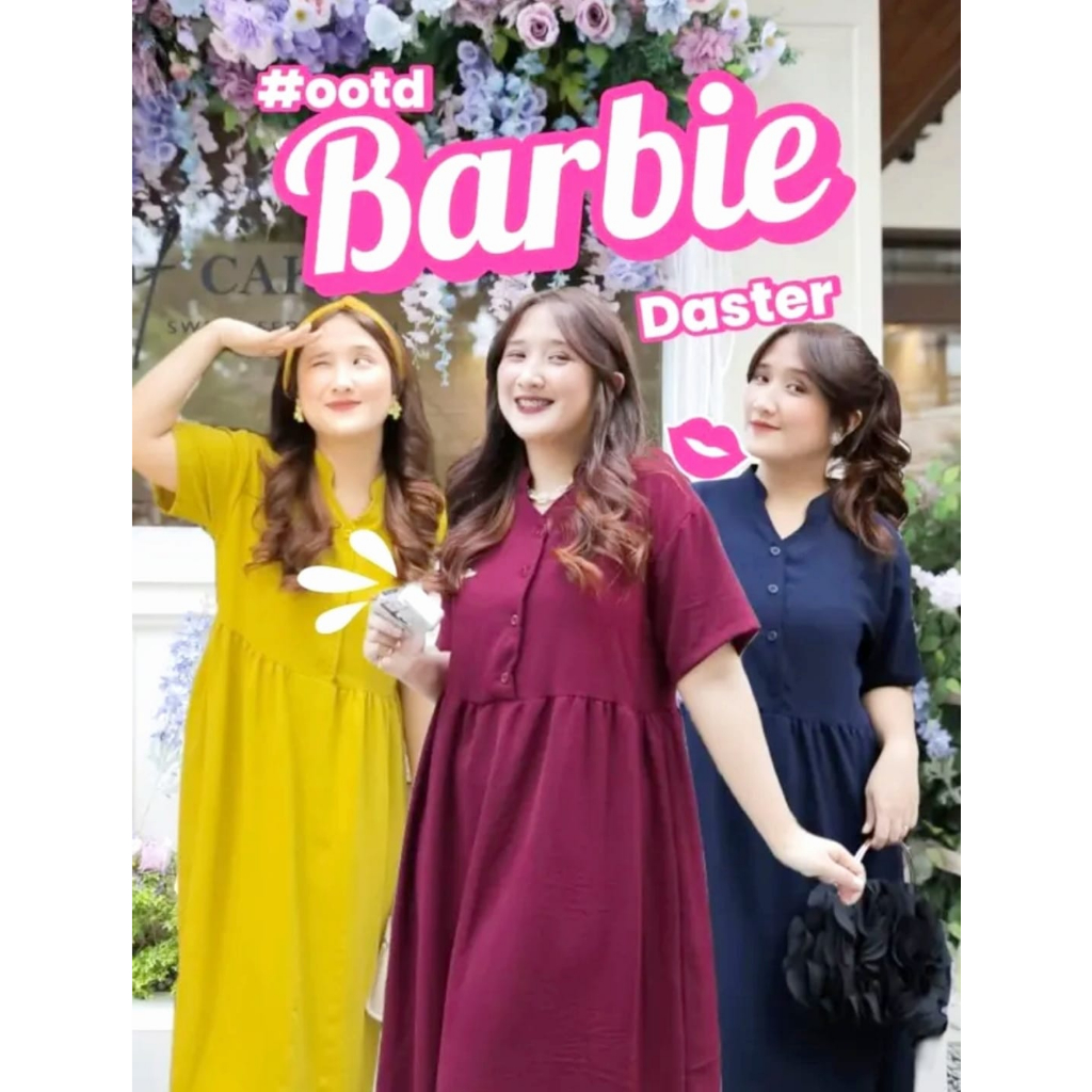 Daster Barbie isi 3 Pcs Midi Dress Wanita Dewasa Bahan Crinkle Airflow Hitam Panjang Busui