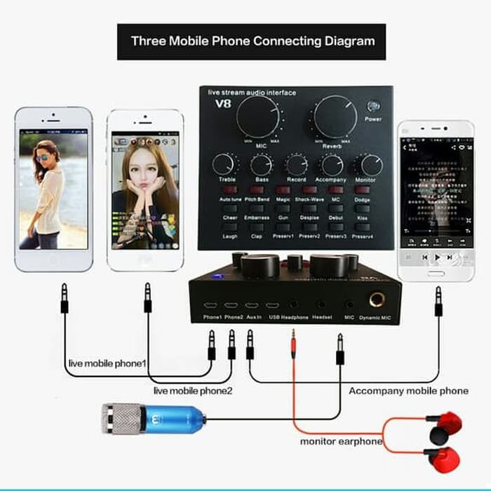 Sound Card V8 Untuk Youtuber, Live Broadcast, Karaoke, Rekaman dan lainnya