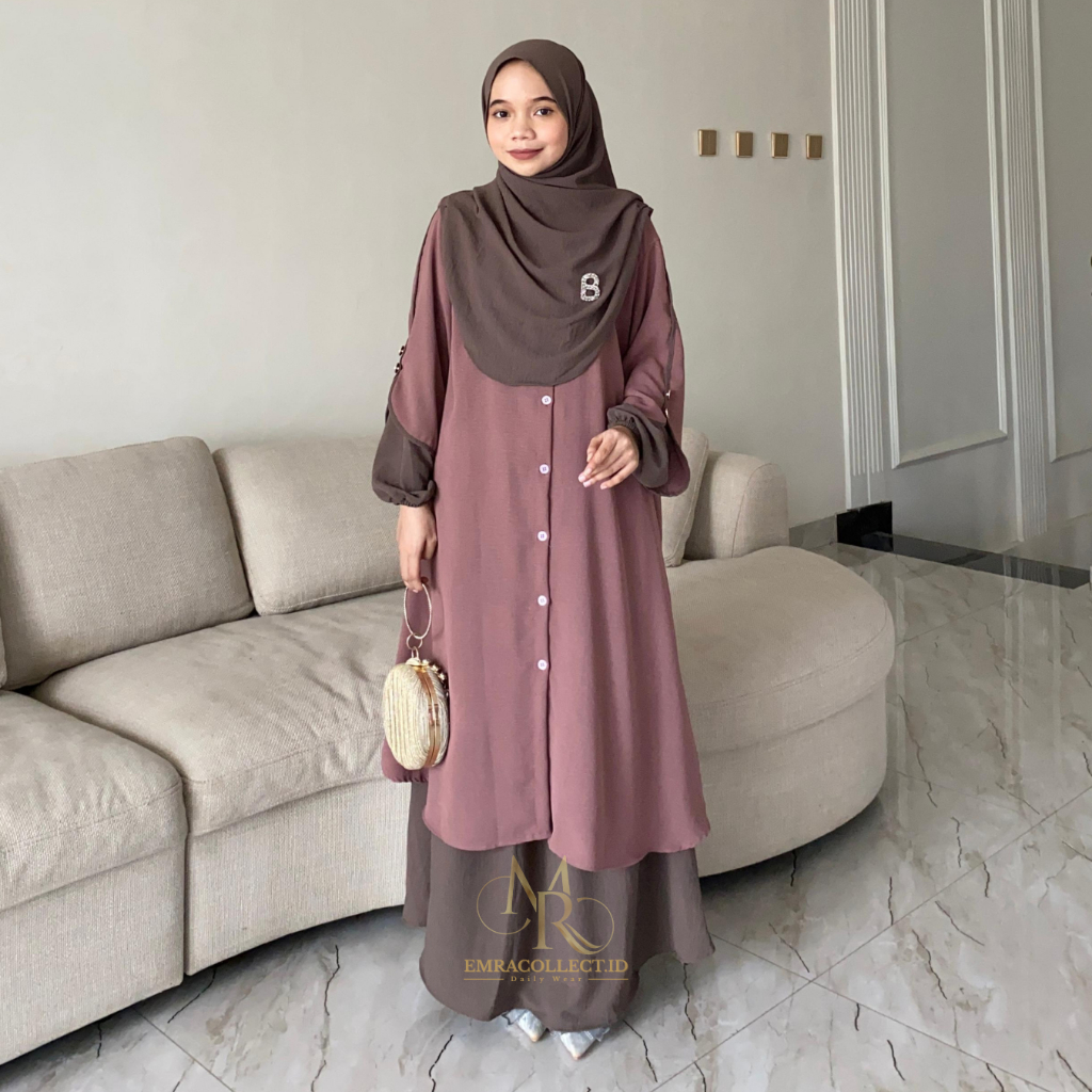 SAMIRA DRESS SET ROK TUNIK SYAR’I SETELAN ROK MUSLIM SYAR’I TUNIK MELAYU JUMBO CRINKLE AIRFLOW - EMRACOLLECT.ID