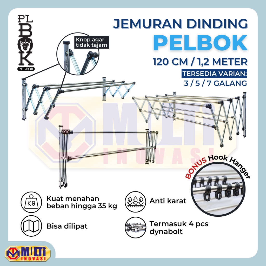 Jemuran Baju Dinding Lipat 120 cm PELBOK Stainless Anti Karat 1,2 Meter