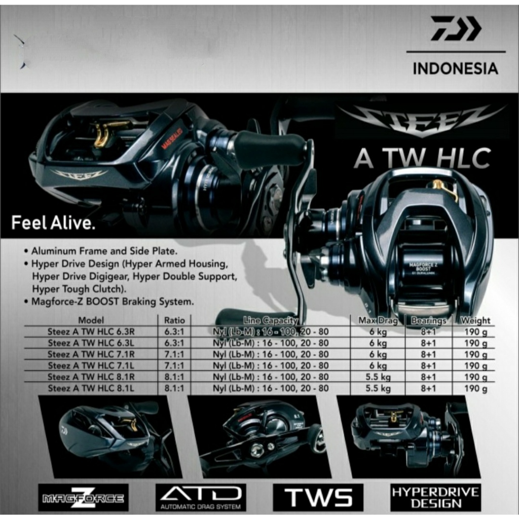 REEL DAIWA STEEZ A TW HLC 6.3/7.1/8.1 - RIGHT & LEFT HANDLE