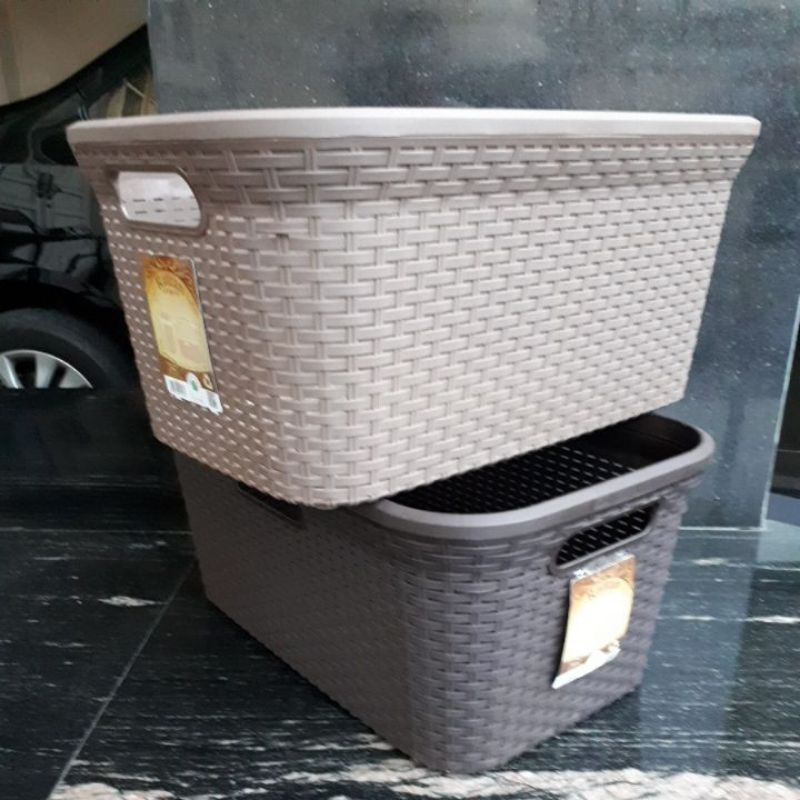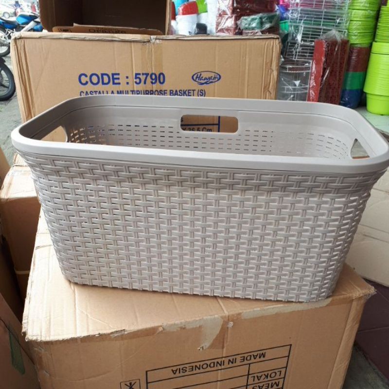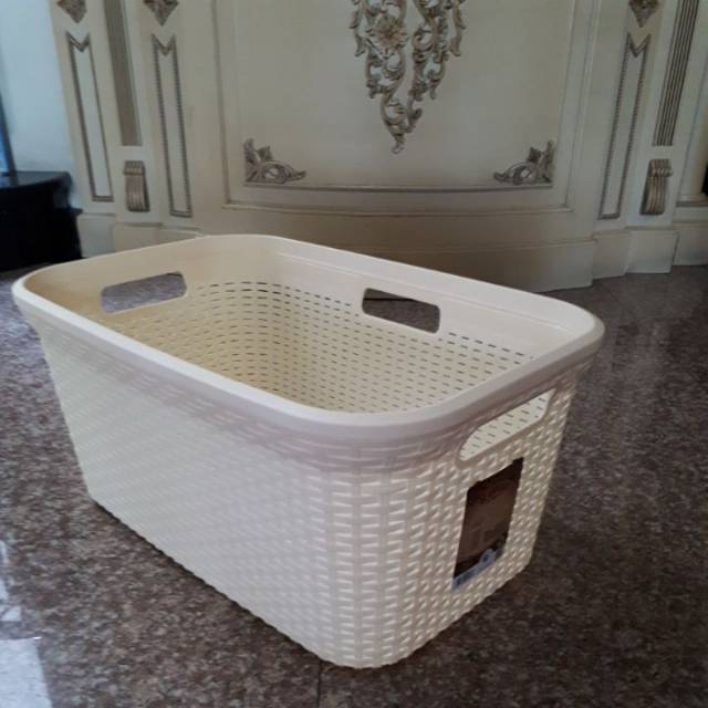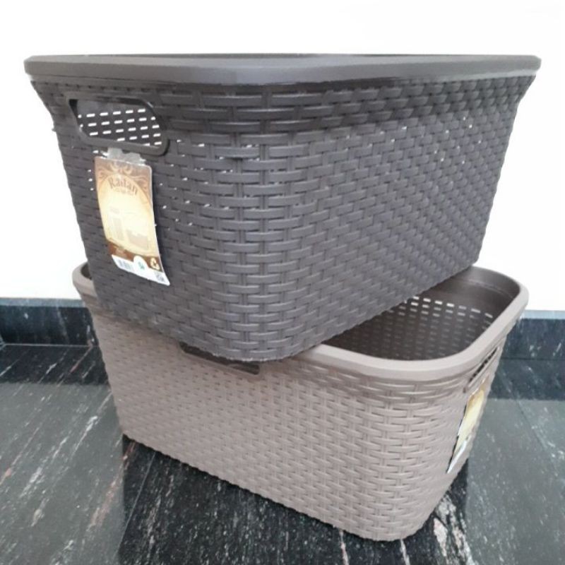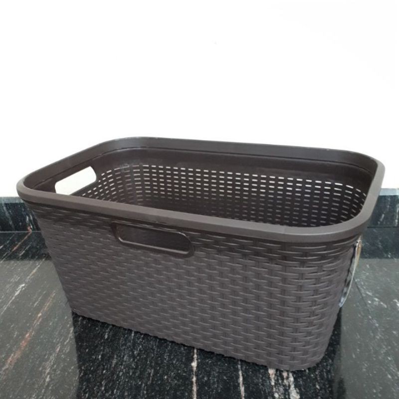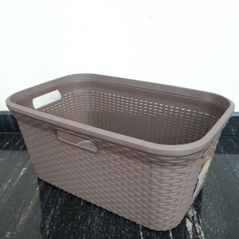 Keranjang pakaian plastik rattan grean leaf
