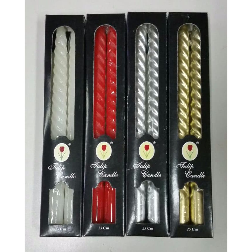 TULIP CANDLE LILIN SPIRAL LILIN ULIR LILIN DECOR MERAH/PUTIH/SILVER/GOLD MURAH 25 CM