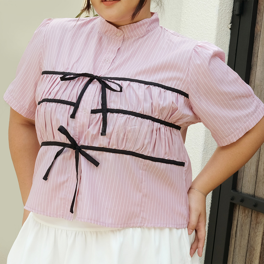 Bigins - Kyra Top/Atasan Kemeja Pita/Korean Style Top/Atasan Kemeja Bigsize - JSB401