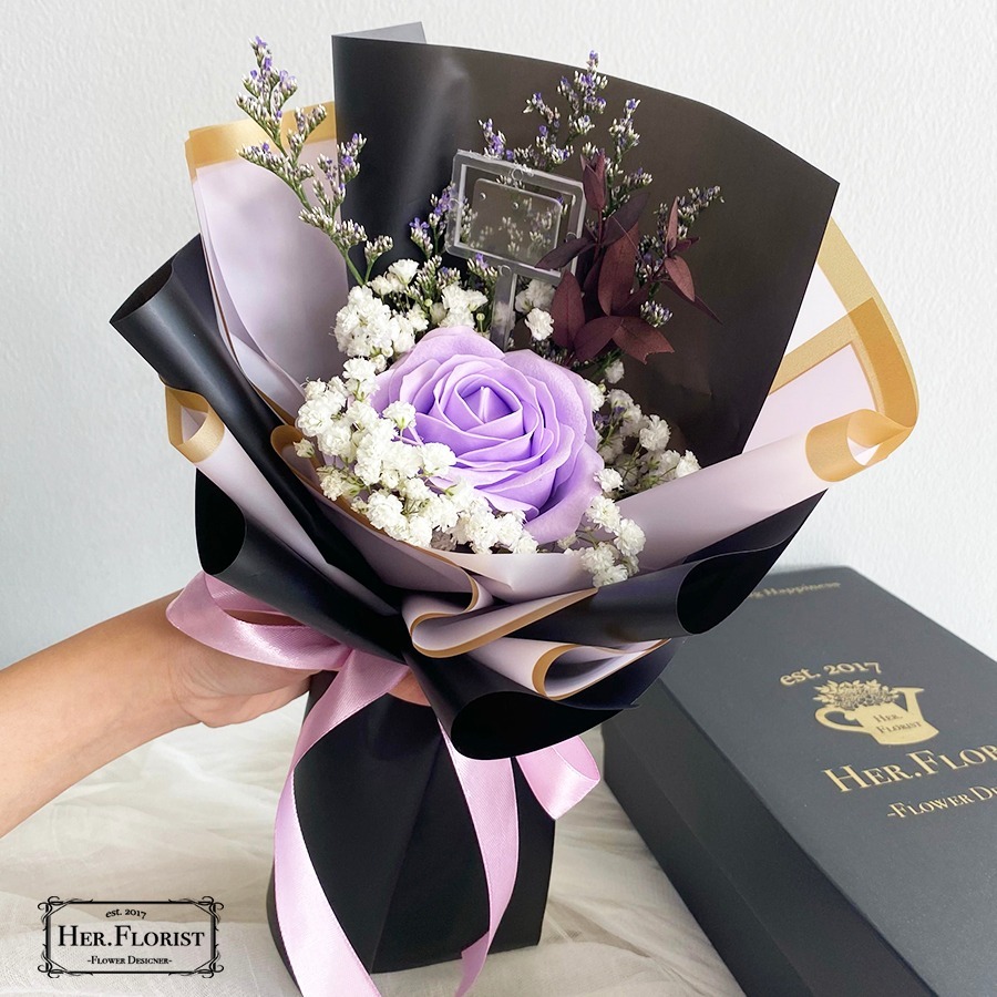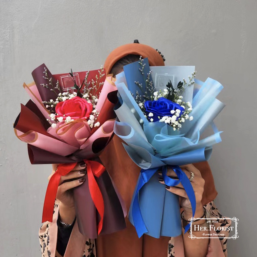 HER.FLORIST [ROSE PREMIUM] Single Soap and Dried Flower Bouquet / Buket Bunga Sabun dan Bunga Kering