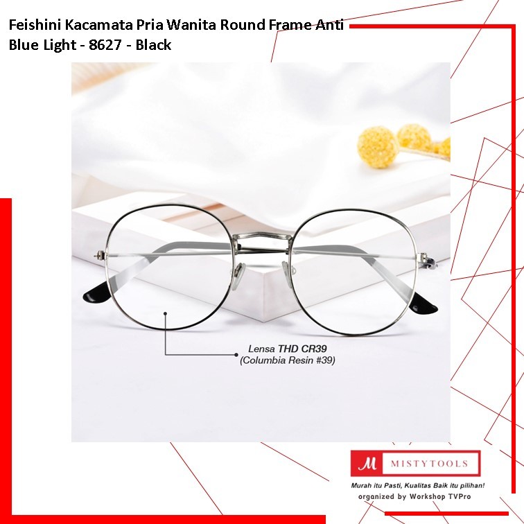 Feishini Kacamata Pria Wanita Round Frame Anti Blue Light - 8627