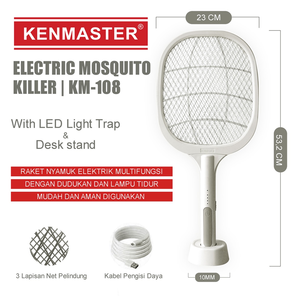 Kenmaster Raket Nyamuk 2 IN KM-108 + Lampu LED + UV / Di Gantung dan Berdiri / Raket nyamuk insect Killer- MOSQ028