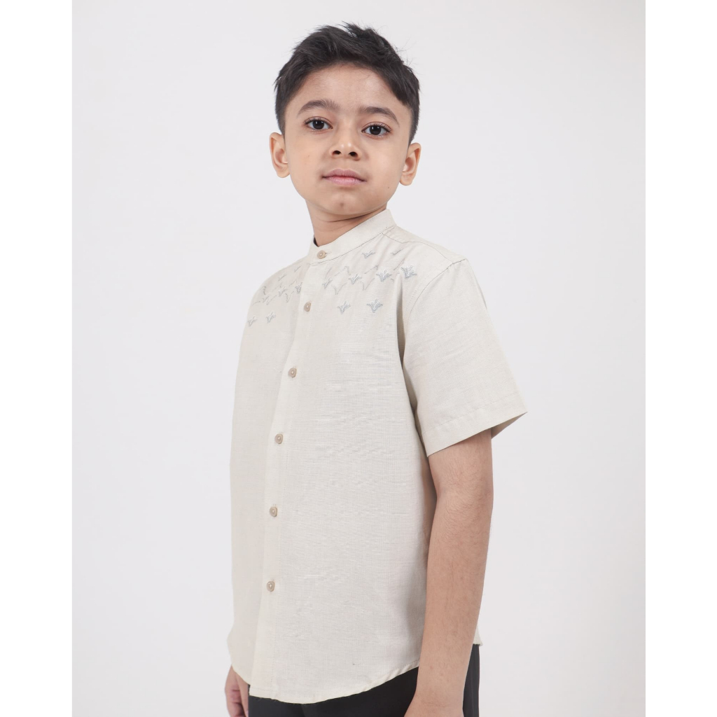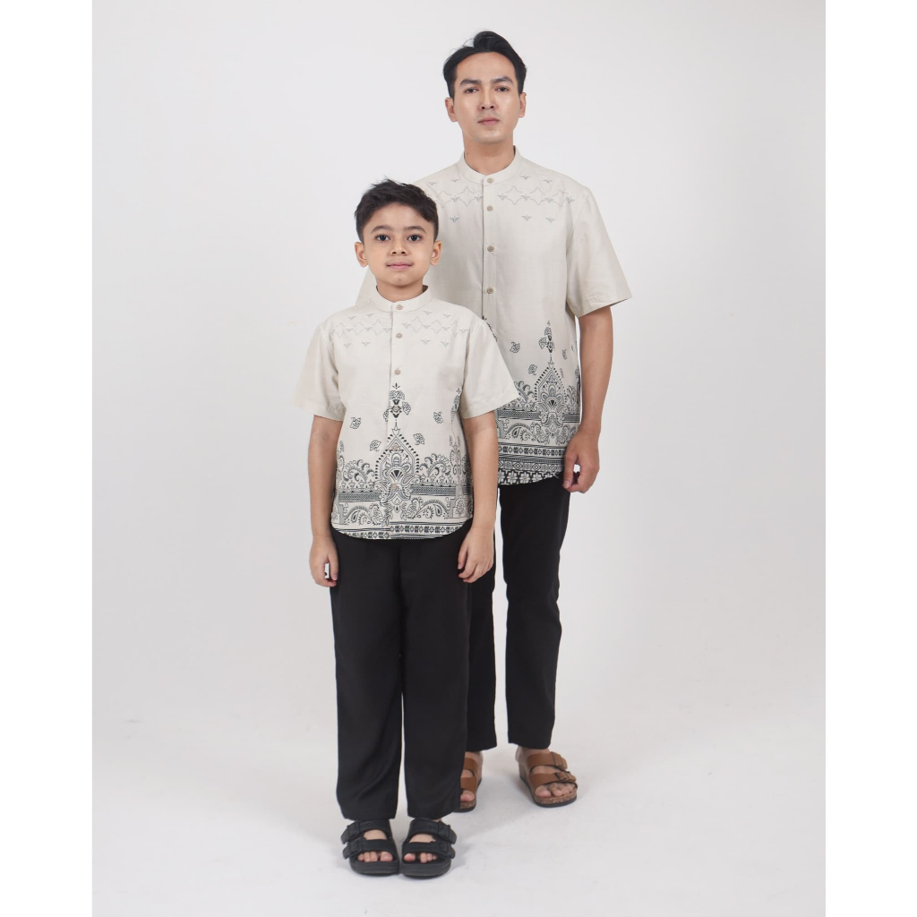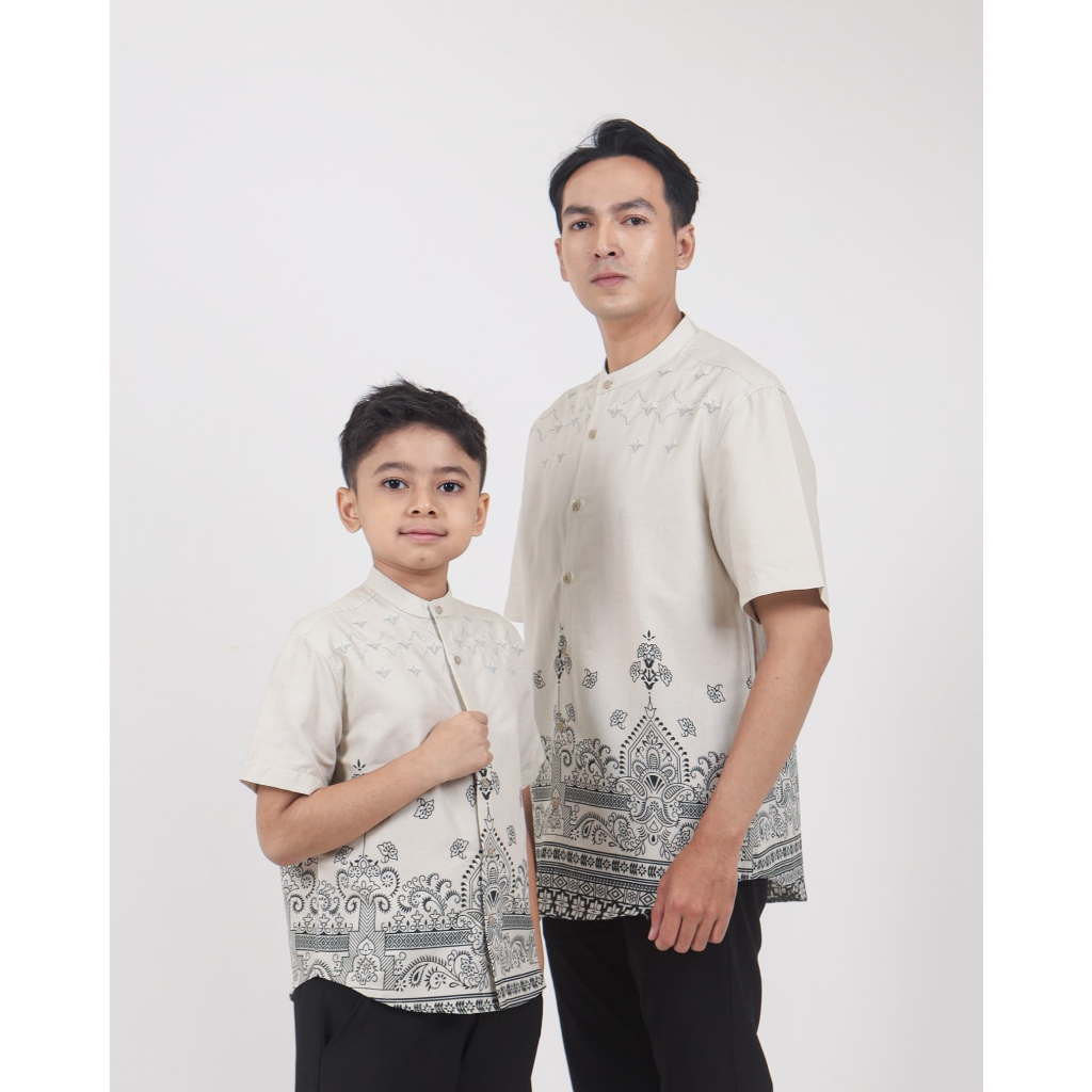 AMK Kemeja Koko Pria Couple Lengan Pendek KK Mahdi Series Cream