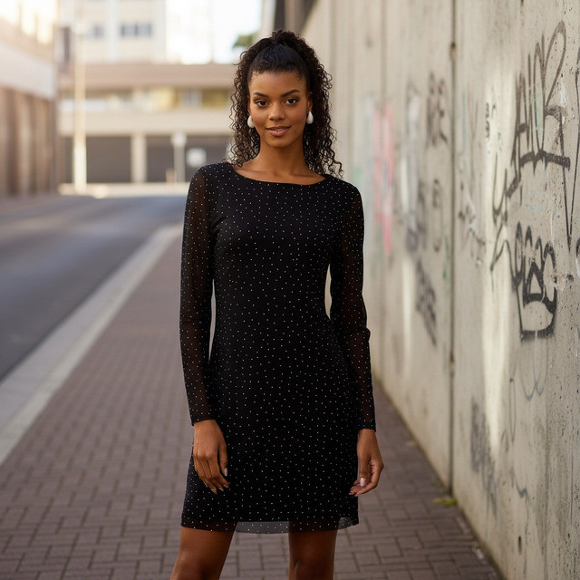 Max Fashions Baju Wanita Embellished Mesh Mini Dress