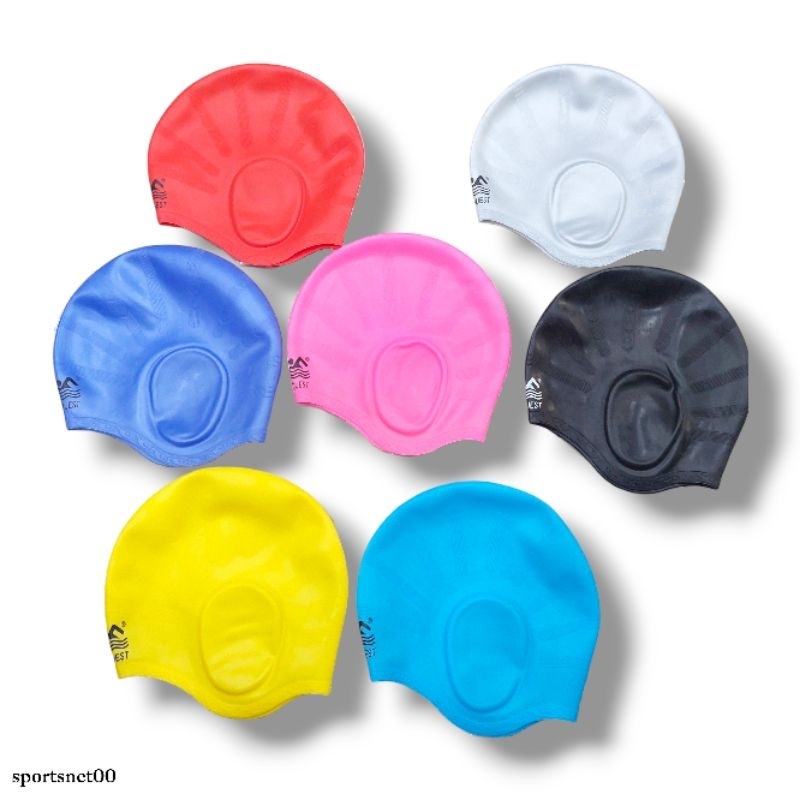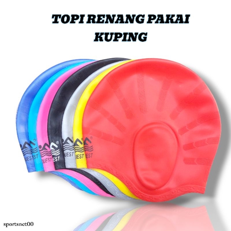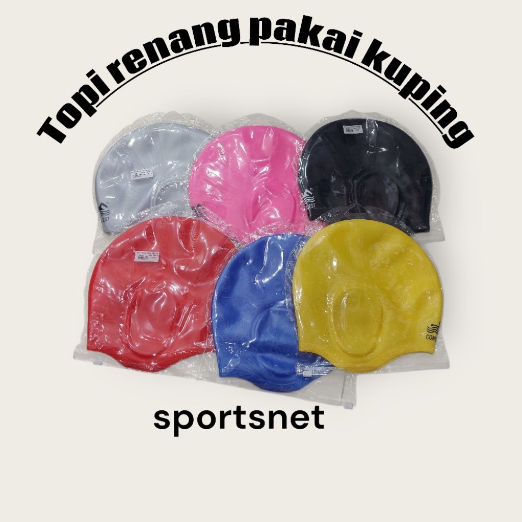 Topi Renang Kuping Conquest Swim Cap / Menutup Telinga Import Slikon