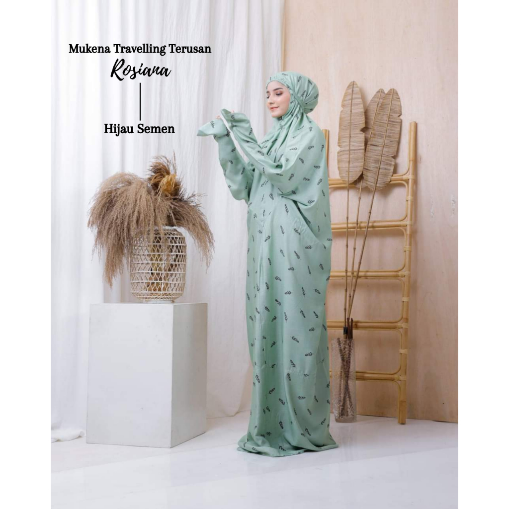 Leesy.id - Mukena Dewasa Terusan Rayon Traveling Motif Rosiana