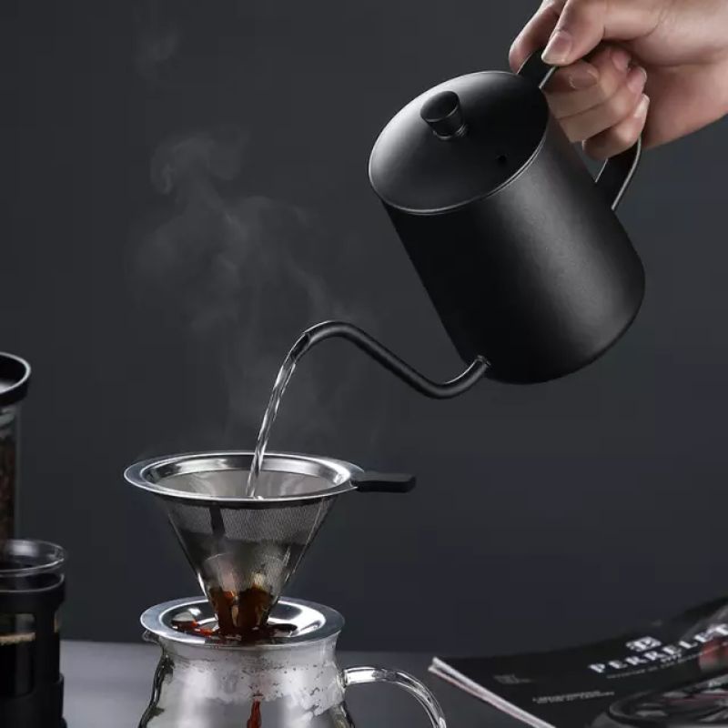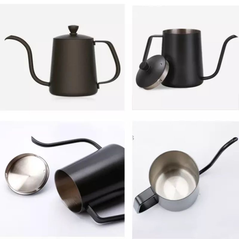 Teko Kopi Leher Angsa V60 350 ml 600 ml Thermometer Black Teflon / Pour Over Coffee Kettle Gooseneck Ketel Termometer Barista / Ketle Peralatan Penyeduh Kopi Coffee Maker Stainless Steel