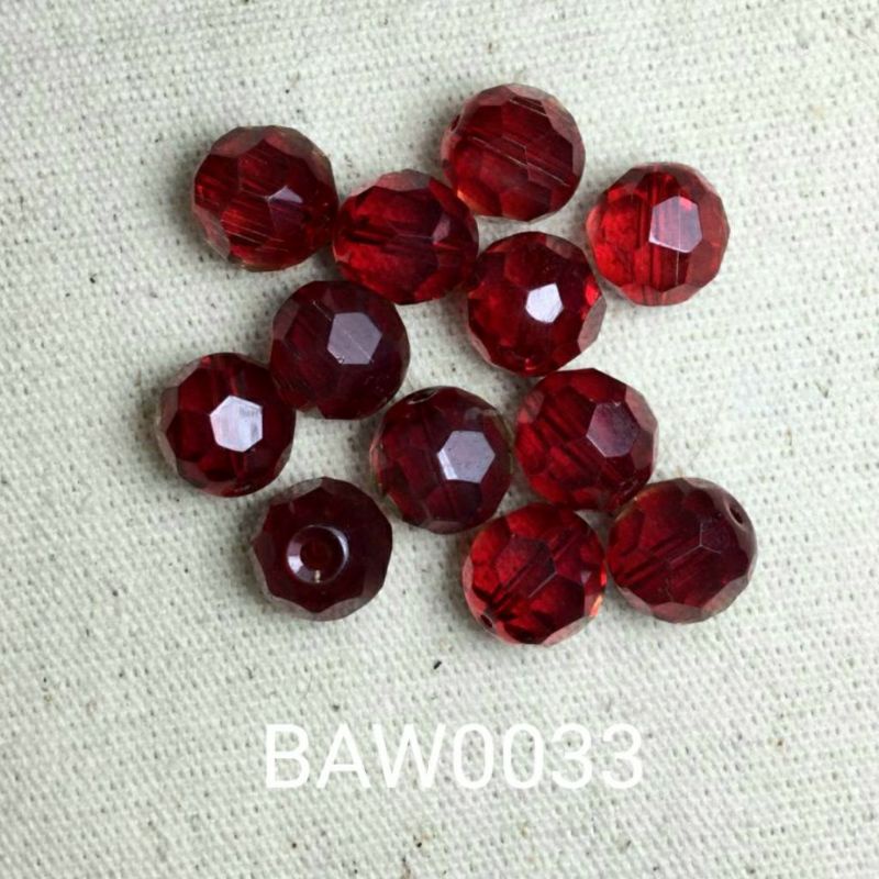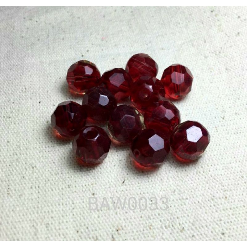 manik manik kristal bulat facet 10 mm merah opaque per lusin